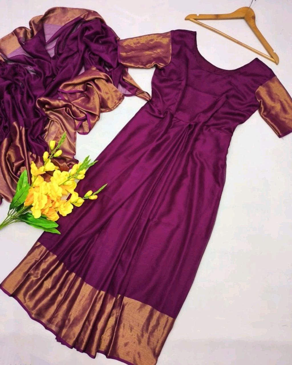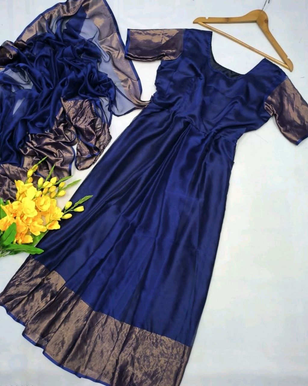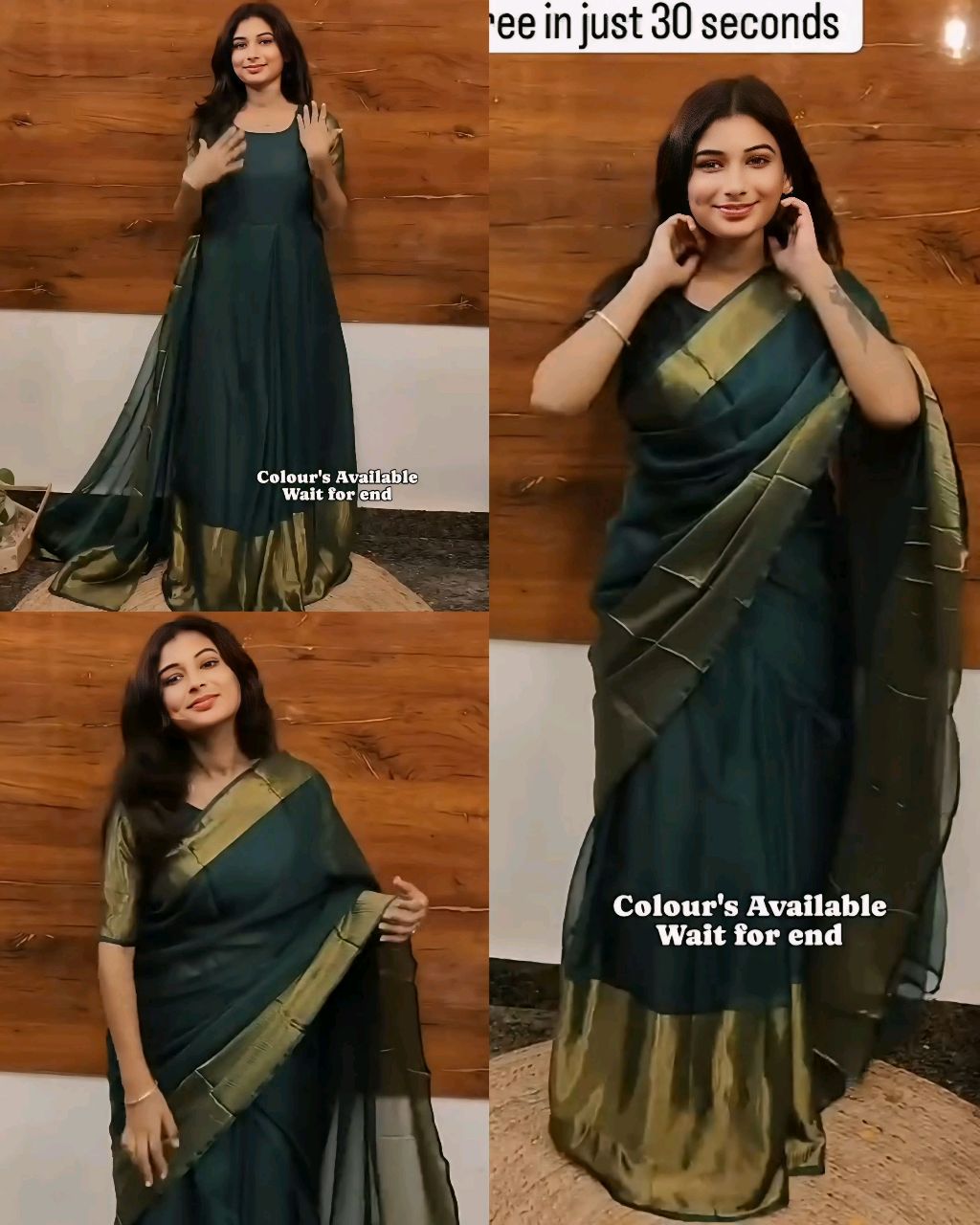 Sold out🚫All Colours 30 Secounds Gown Saree 🔸Fabric: Chiffon Silk 🔸Height:- 54 – 55 inch 🔸Inner :- MICRON COTTON 🔸Sleeve :- 12 inch HALF SLEEVE 🔸BUST SIZE : XS – 34, S – 36, M – 38 in, L – 40 in, XL – 42, XXL – 44, XXXL – 46, 4XL