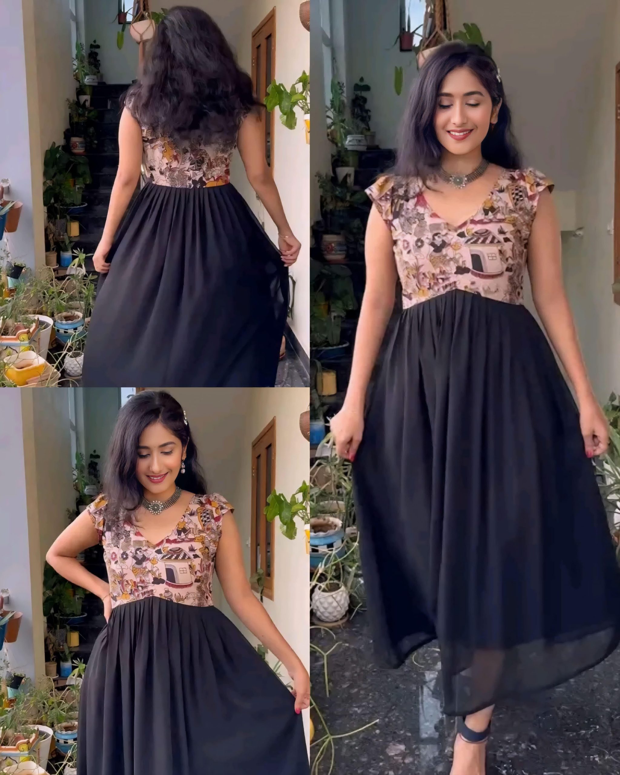 Aline Flared Kurti 🔸 Fabric: Georgette 🔸Sleeve Length: Sleeveless 🔸Pattern: Printed 🔸SIZE : S(36) M(38) L(40) XL(42)