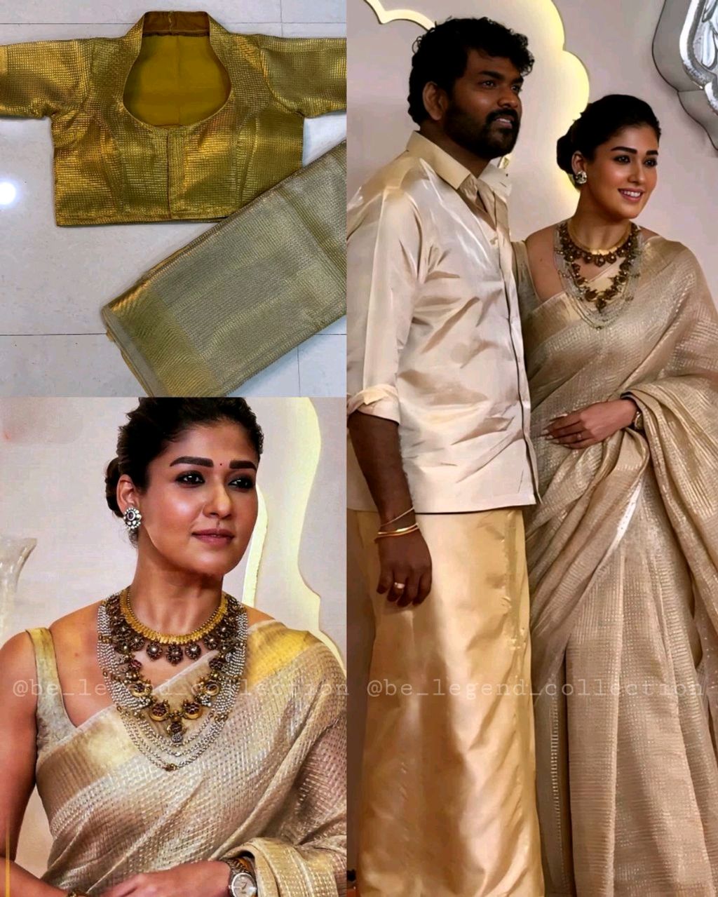 Ambani wedding Nayanthara mam Inspired saree 🔸Fabric : Banarasi tissue 🔸Saree length : 5.50 🔸Blouse length : 1 meter ( app ) 🔸unstitched Blouse 🔸Best quality guaranteed ♥️
