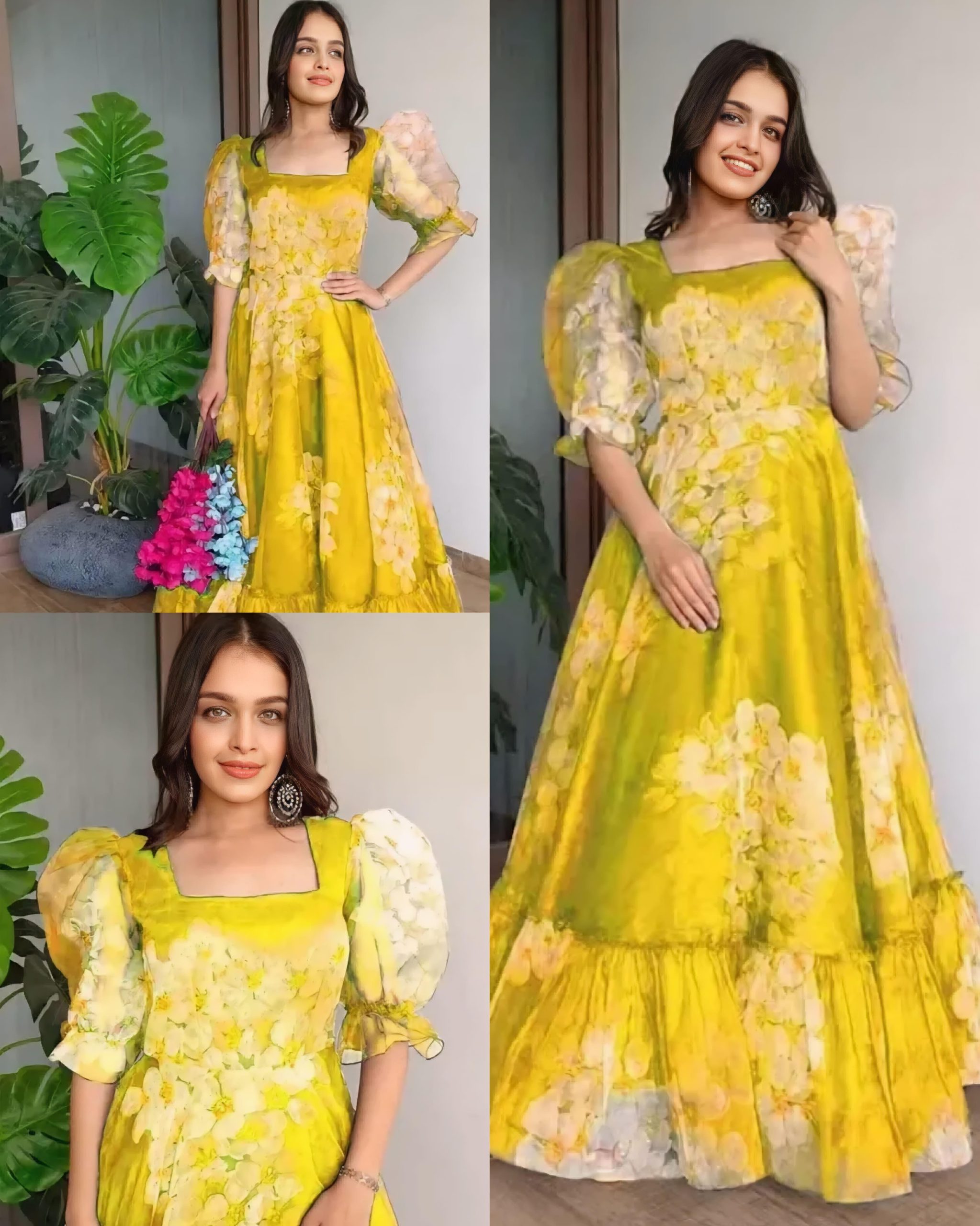 Sold out all colours and Size🚫 Attractive Gown for Women 🔸Fabric: Georgette 🔸 Pack Of: Single 🔸 Type: Stitched 🔸 Design Type: Indo-western 🔸SIZE M(38) L(40) XL(42) XXL (44)