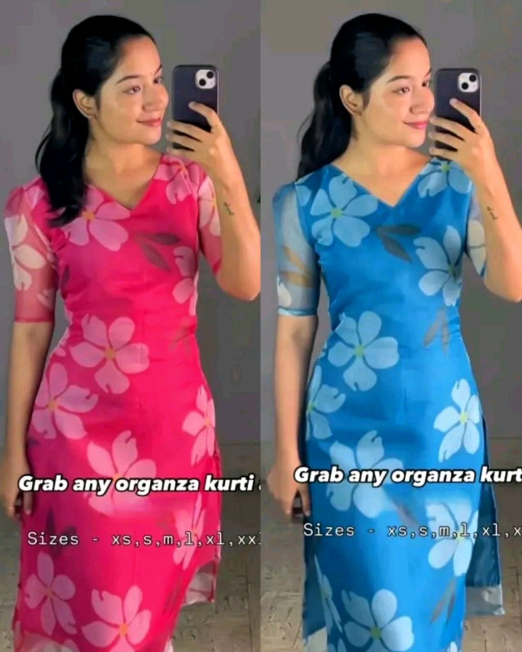 Attractive Woman A-Line Kurti 🔸Fabric : Organza 🔸Sleeve Length: Short Sleeves 🔸Pattern: Printed 🔸Combo of: Single 🔸BUST SIZE : XS – 34, S – 36, M – 38 in, L – 40 in, XL – 42, XXL – 44, XXXL – 46