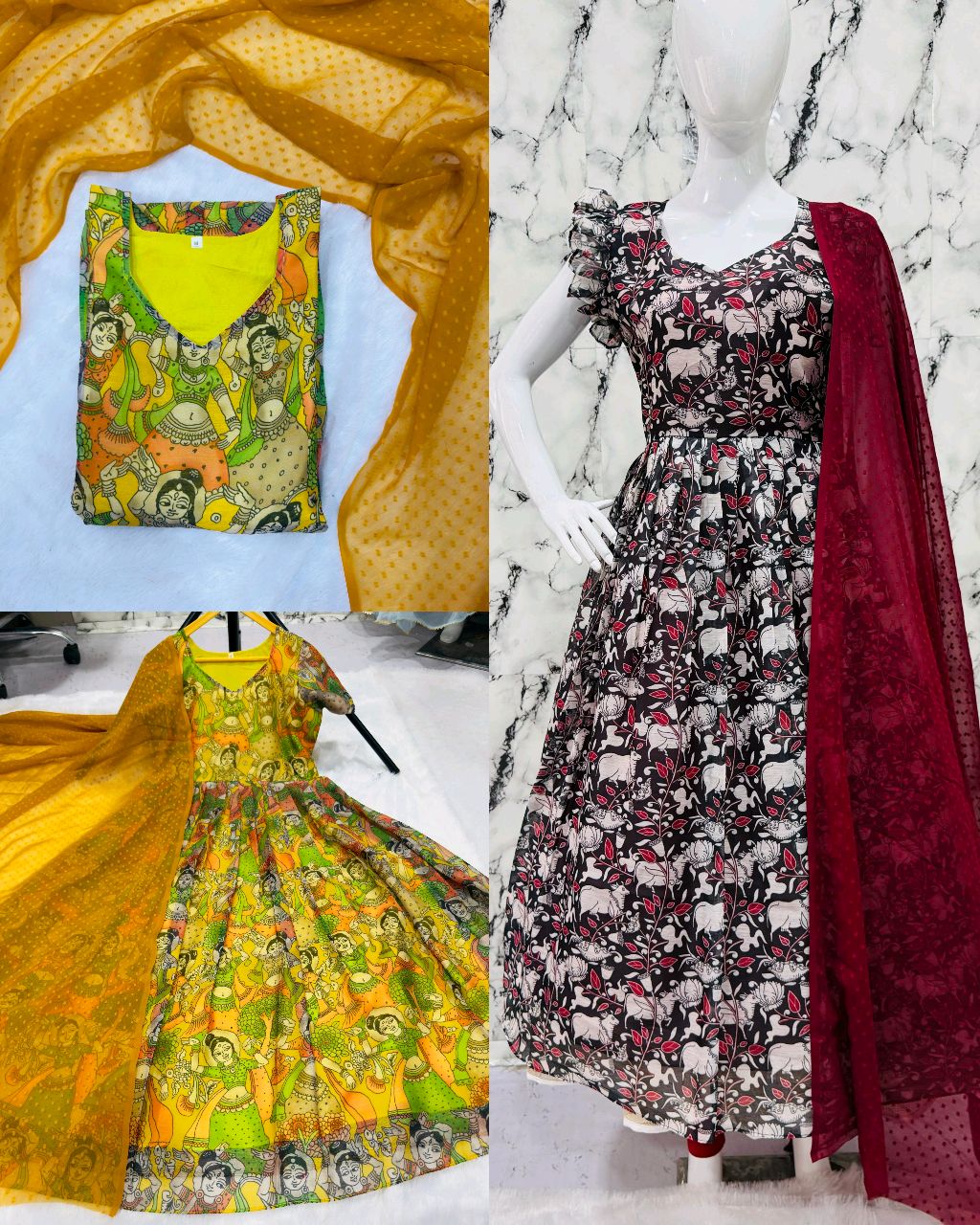 Beautiful Cotton Chanderi Paired With Georgette Butti Duptta 🔸Fabric: Georgette Butti Duptta* 🔸(Full lining available inside)* 🔸Lenth : 48 inch* 🔸BUST SIZE : S – 36, M – 38 in, L – 40 in, XL – 42, XXL – 44, XXXL – 46