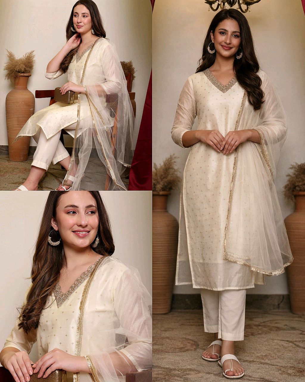 Beautiful Designer Kurti Pant With Duppata 🔸Fabric: Chanderi Cotton 🔸Bottomwear Fabric: Chanderi Cotton 🔸Dupatta Fabric: Net 🔸Sleeve Length: Three-Quarter Sleeves 🔸Sleeve Styling: Regular 🔸Length: Calf Length 🔸Neck: V-neck 🔸Net Quantity (N): Single 🔸BASIC BUST SIZE : XS – 34, S – 36, M – 38 in, L – 40 in, XL – 42, XXL – […]