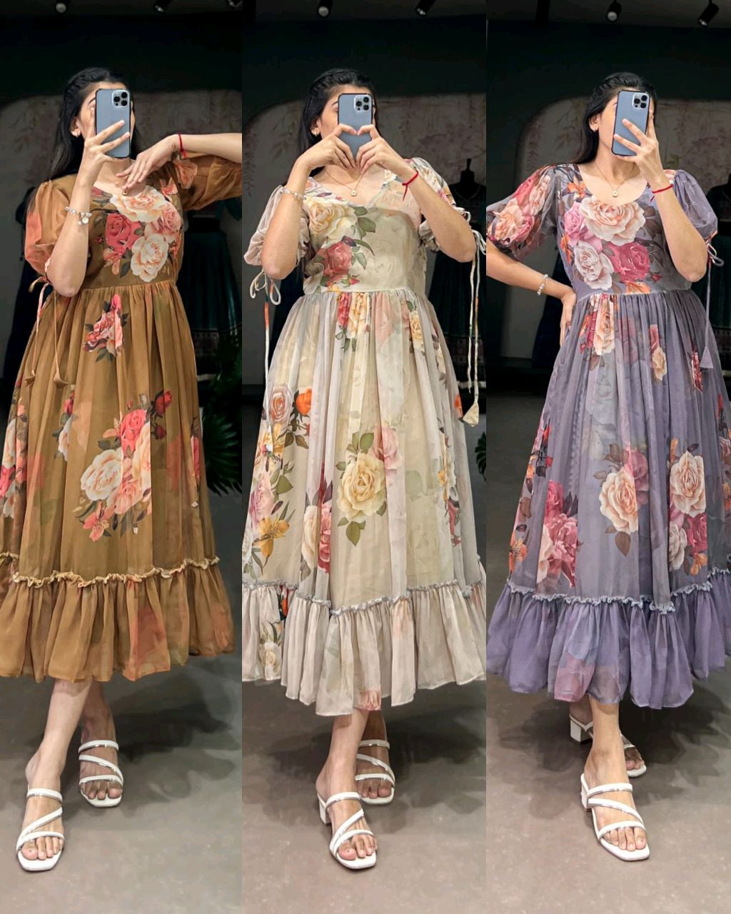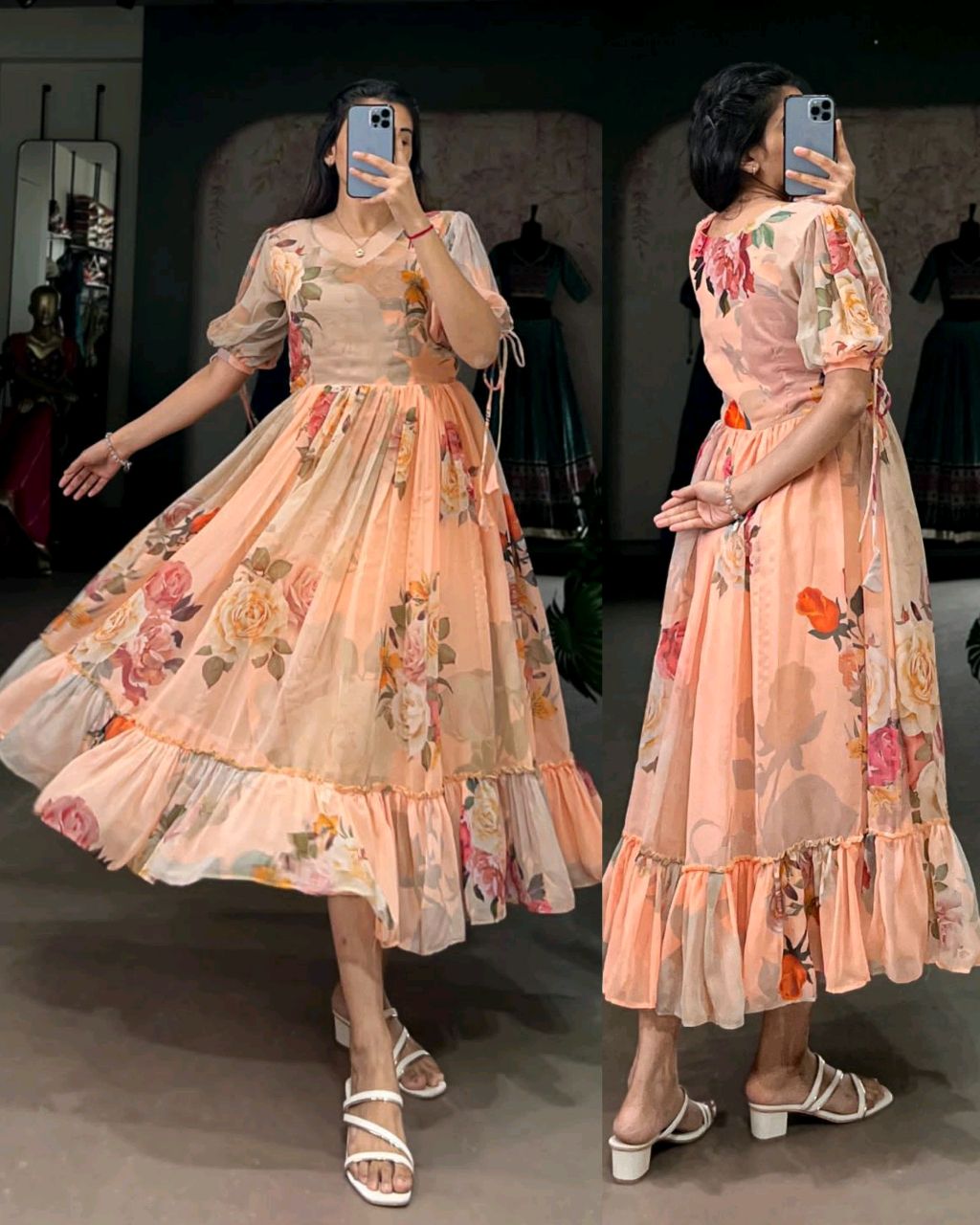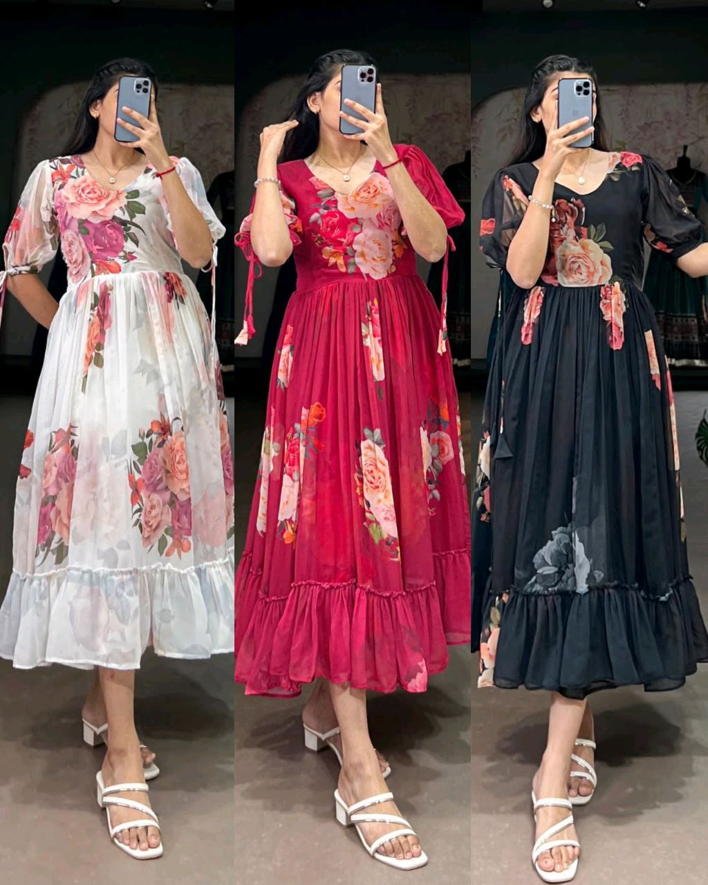 BEAUTIFUL FLORAL MAXI 🌺 🌺 🔸Fabric: Fox Georgette 🔸Complete Linning 🔸Length:- 50″ 🔸Sleeves Short 🔸Flare 5.50 mrts 🔸BUST SIZE : XS – 34, S – 36, M – 38 in, L – 40 in, XL – 42, XXL – 44, XXXL – 46