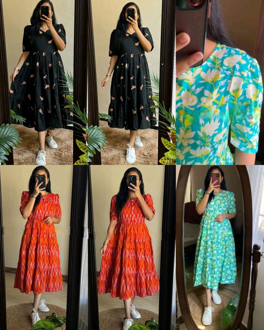 !Beautiful floral print Cotton Full Flair Middy Gown!! 🔸Fabric – Pure Cotton 🔸Length -47 🔸SIZE : M(38) L(40) XL(42) XXL (44) 3XL (46