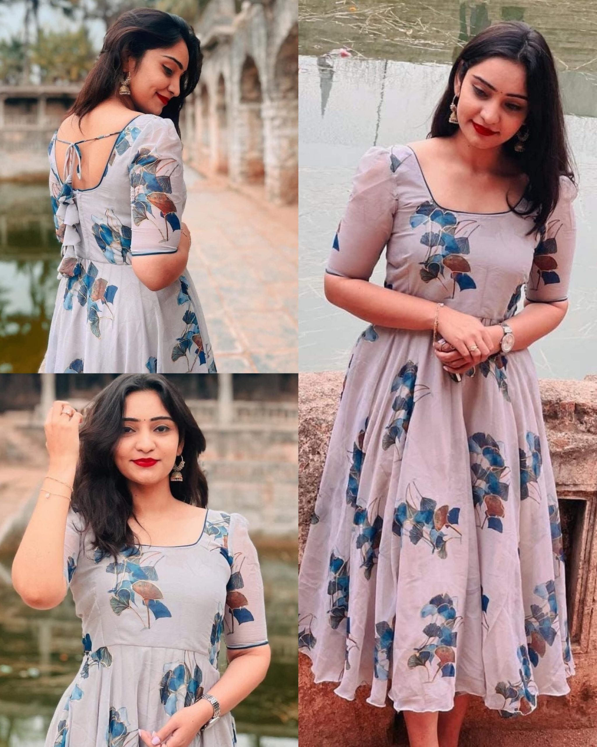 Beautiful Gown 🔸Fabric: Fabric : Fuax Geourgett 🔸INNER :- Crep 🔸SIZE : S(36) M(38) L(40) XL(42) XXL (44) 3XL (46)