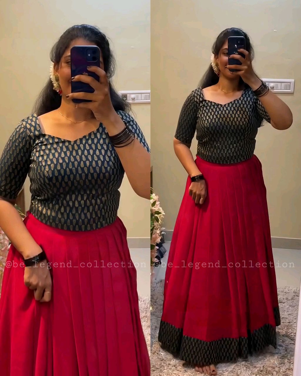 Beautiful Pleated Skirt With Border And Brocade Blouse In Cotton Available As :-Stitched Skirt+ Stitched Blouse 🔸Fabric 🔸Skirt :- Faux Georgette* 🔸Skirt waist :-Supported up to 42* 🔸Skirt lengh :- 41 INCH* 🔸Flair :- 3.50 Miter* 🔸Inner :- Micro Cotton* 🔸Blouse :- Cotton Brocade ( Full Stitched )* 🔸Size :- L ( 40) Raddy With […]