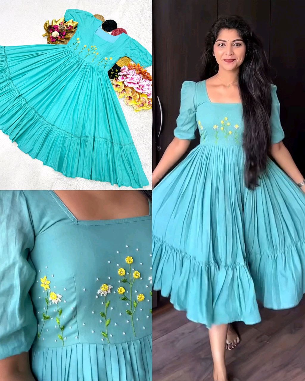Beautiful Stylist Gown with Handowk – Elegance & Comfort 🔸 Fabric : Mul Mul Cotton 🔸Work : Handwork 🔸Length : 48 inch 🔸Lining : Micro Cotton 🔸BUST SIZE : XS – 34, S – 36, M – 38 in, L – 40 in, XL – 42, XXL – 44, XXXL – 46