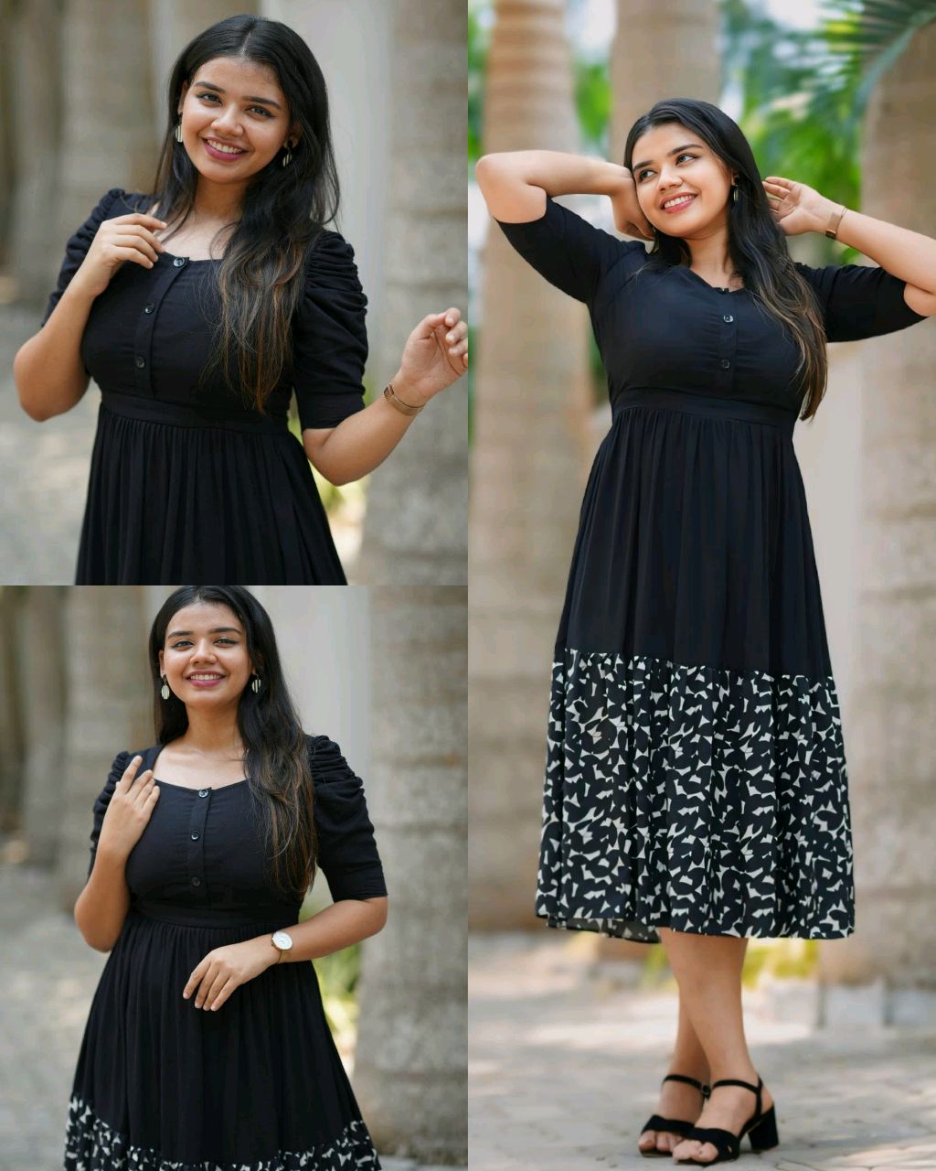 Black Midi Dress with Abstract Patterned Hem and Button-Front Bodice” Embrace effortless style black midi 🔸Fabric : Viscose Rayon 🔸SIZE : S(36) M(38) L(40) XL(42) XXL (44) 3XL (46) 4XL (48) 5XL (50)