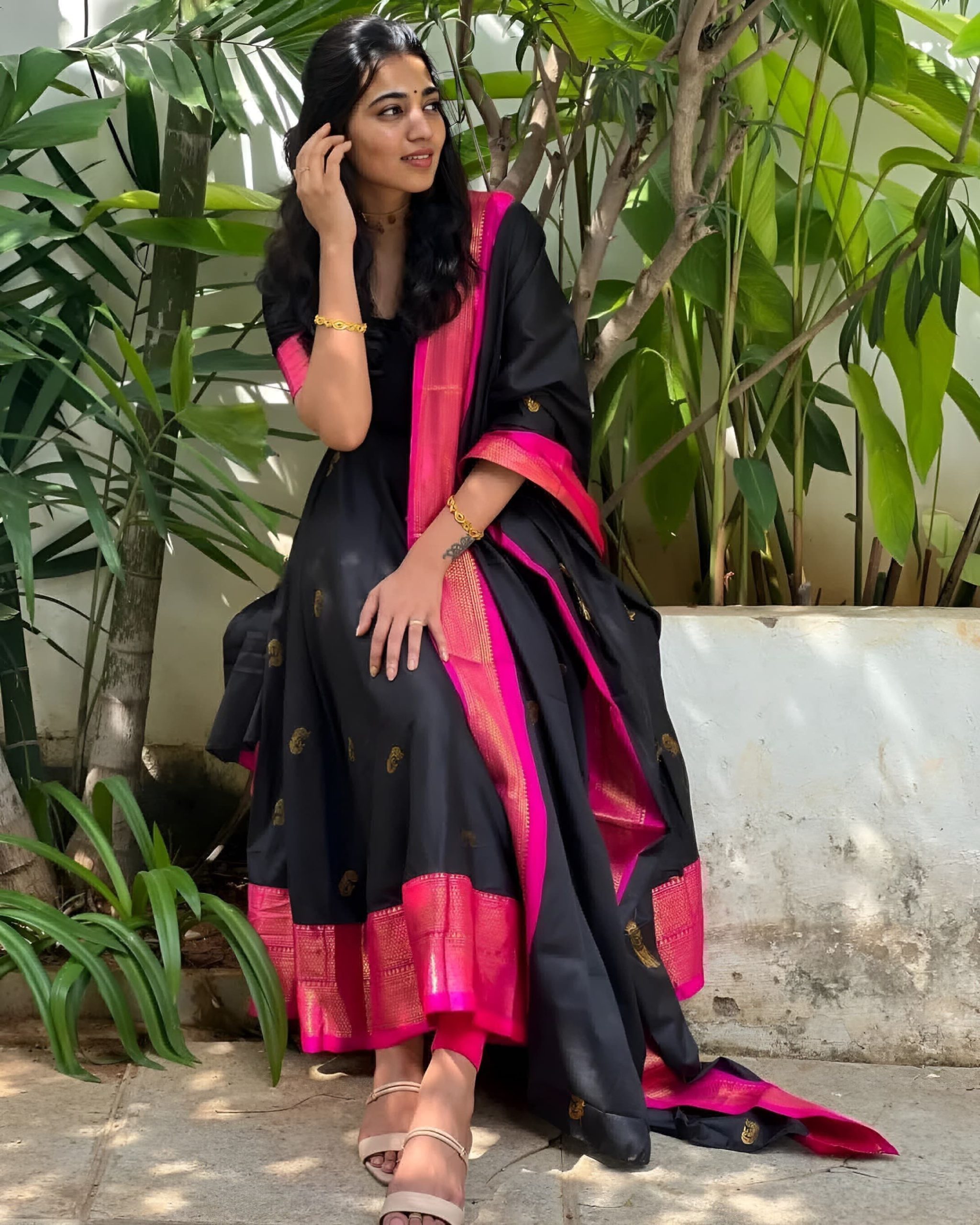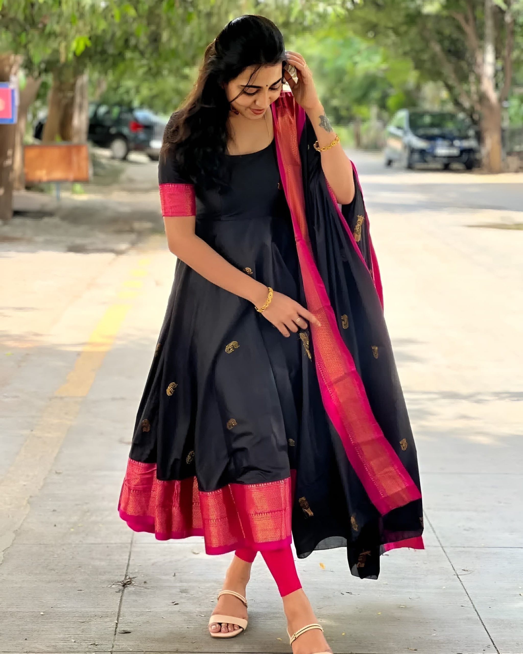 Gown + Dupata Gown fabirc : paithani silk Gown length : 46 inches Dupata fabric : paithani silk Full lining Size : S to XXXL Dupata length : 2.2 meter