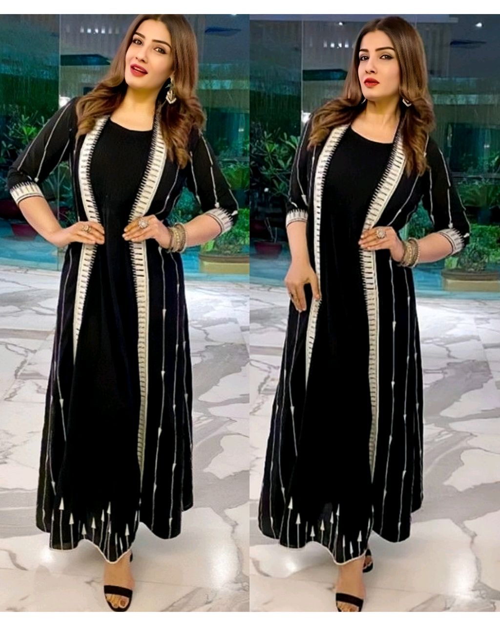Black Solid Pattern Kurti With Attached Shrug 🔸FABRIC : Rayon 🔸Sleeve Length: Three-Quarter Sleeves 🔸Pattern: Printed 🔸Combo of: Single 🔸BUST SIZE : XS – 34, S – 36, M – 38 in, L – 40 in, XL – 42, XXL – 44, XXXL – 46