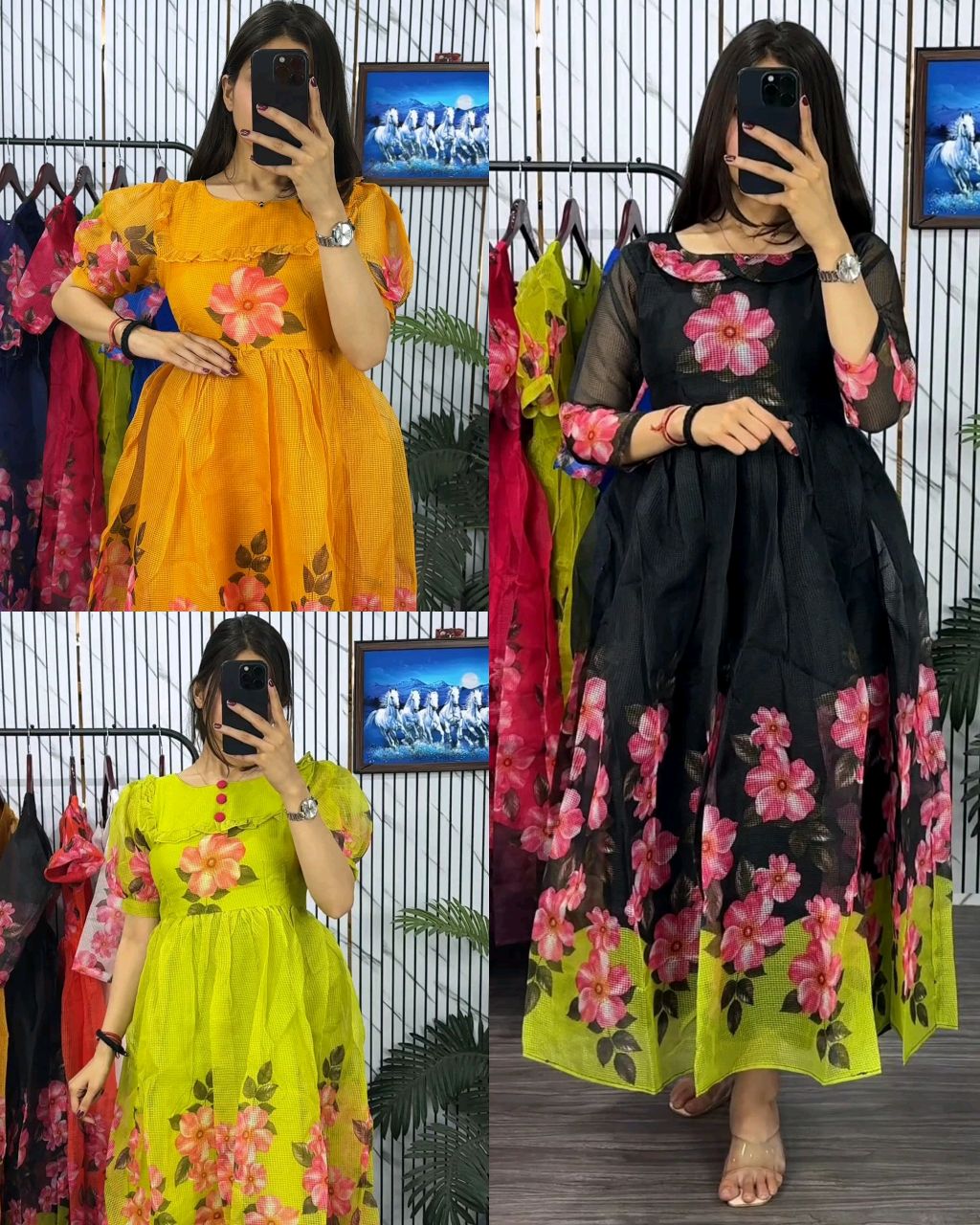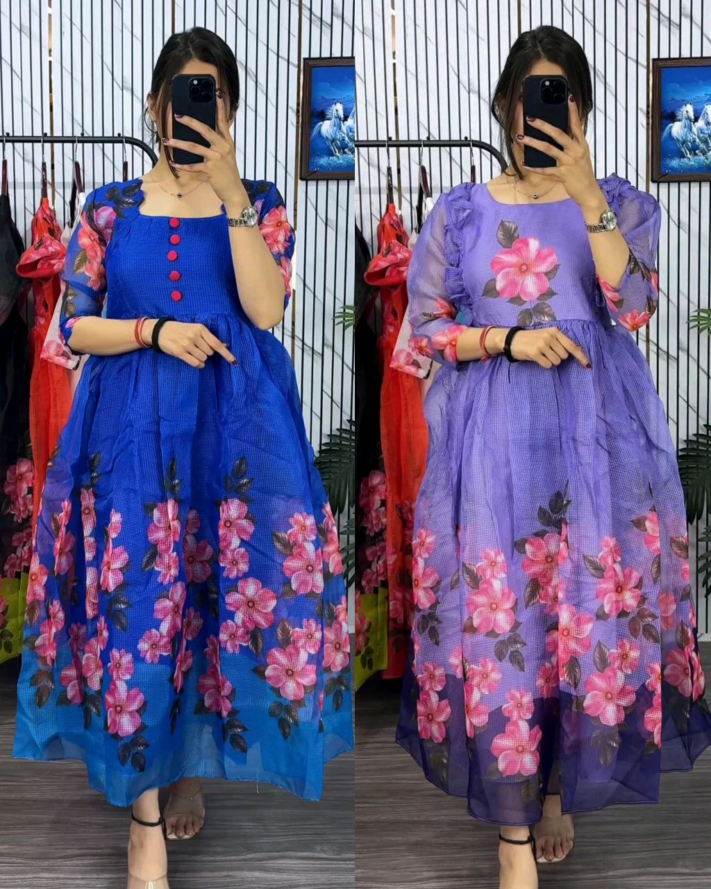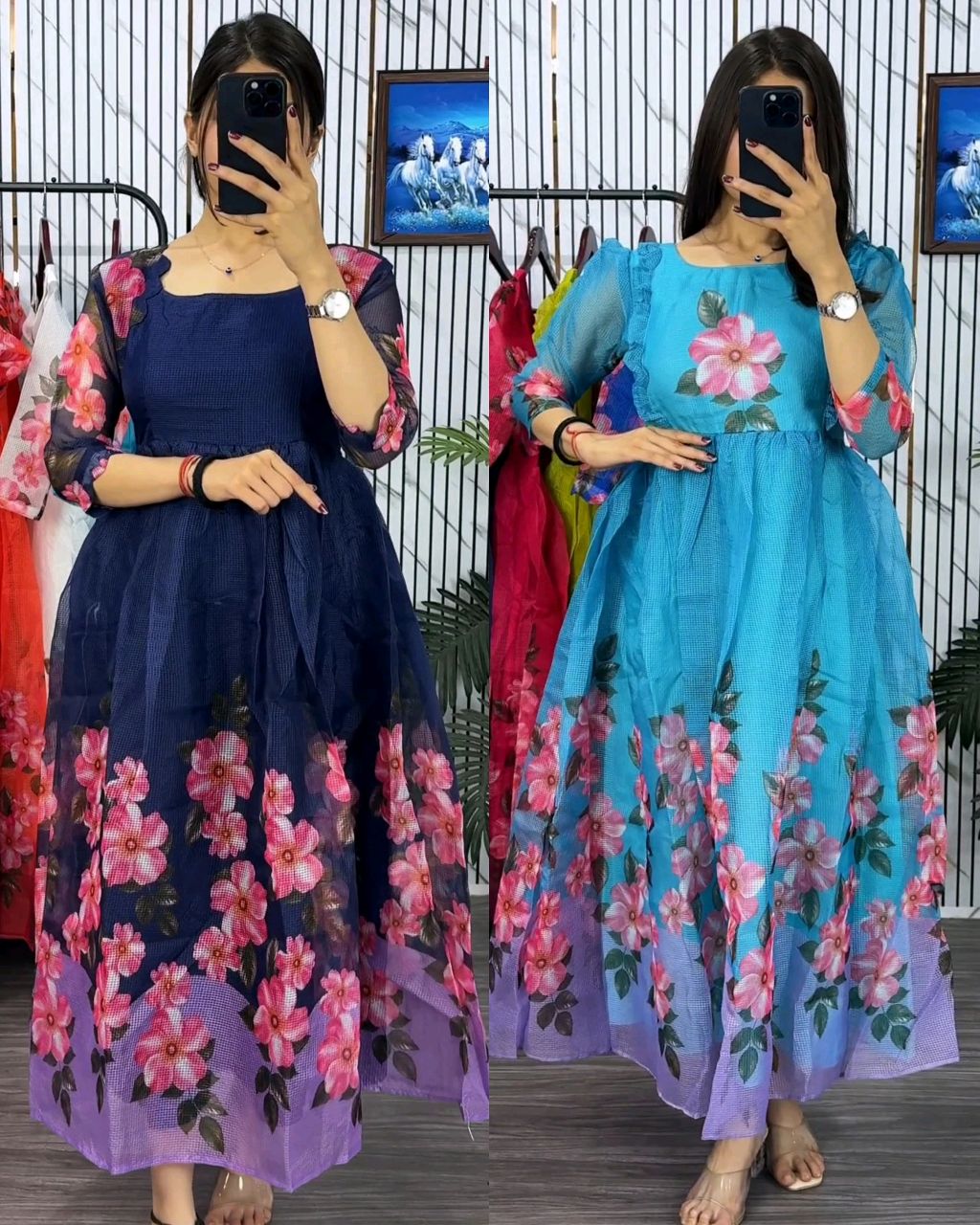 Blooming with beauty in this elegant floral print dress 🔸Fabric: Cubic 🔸Complete Linning 🔸Length:- 46″ 🔸 Sleeves length Short 🔸SIZE : S(36) M(38) L(40) XL(42) XXL (44) 3XL (46)