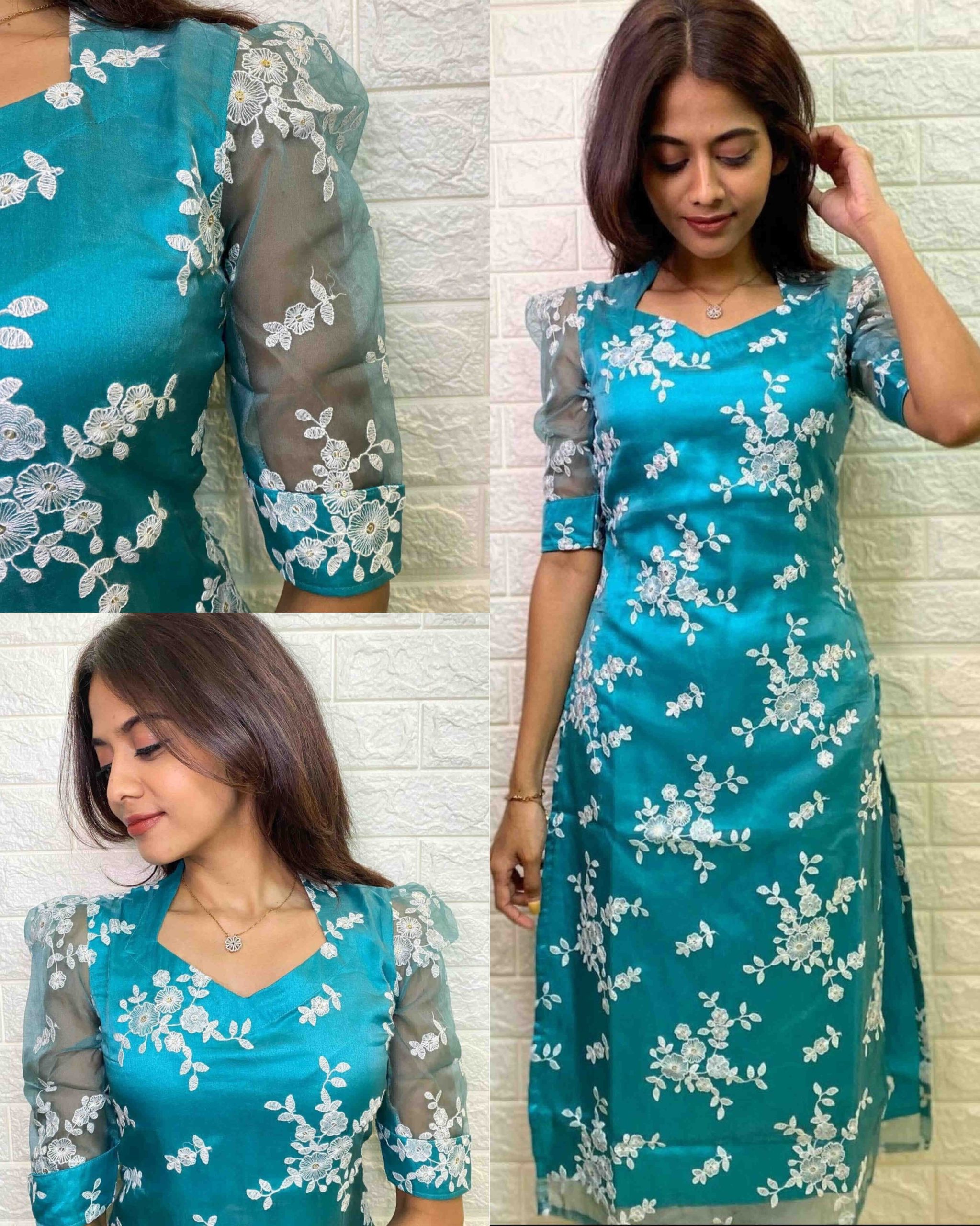 Bollywood style kurti 🔸Fabric: Organza 🔸Sleeve Length: Three-Quarter Sleeves 🔸Pattern: Embroidered Combo of: Single 🔸SIZE : S(36) M(38)