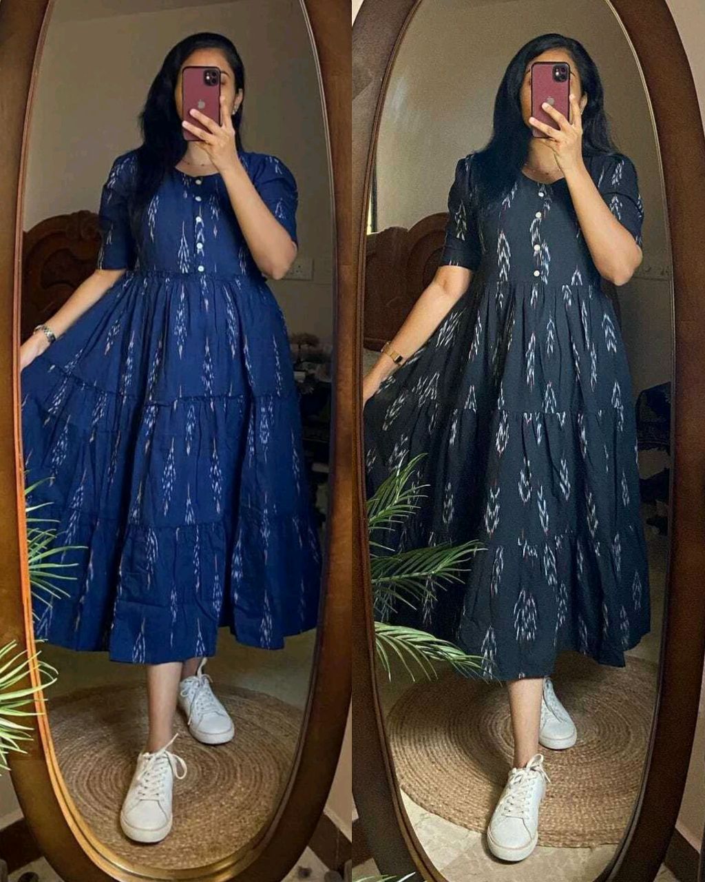 Cotton Printed Stylish Single Gown 🔸 Fabric : Cotton 🔸Sleeve Length: Short Sleeves 🔸Length-47inch 🔸BUST SIZE : XS – 34, S – 36, M – 38 in, L – 40 in, XL – 42, XXL – 44, XXXL – 46