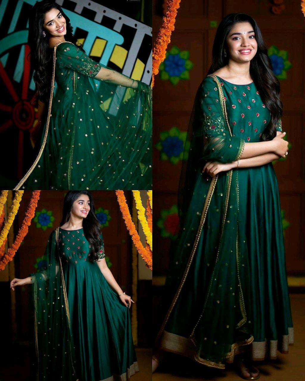 Dark green anarkali Kurta Dupatta set 🔸Fabric: Art Silk 🔸Bottomwear Fabric: No Bottomwear 🔸Sleeve Length: Short Sleeves 🔸Pattern: Embellished 🔸Net Quantity (N): Single 🔸BUST SIZE : S – 36, M – 38 in, L – 40 in, XL – 42