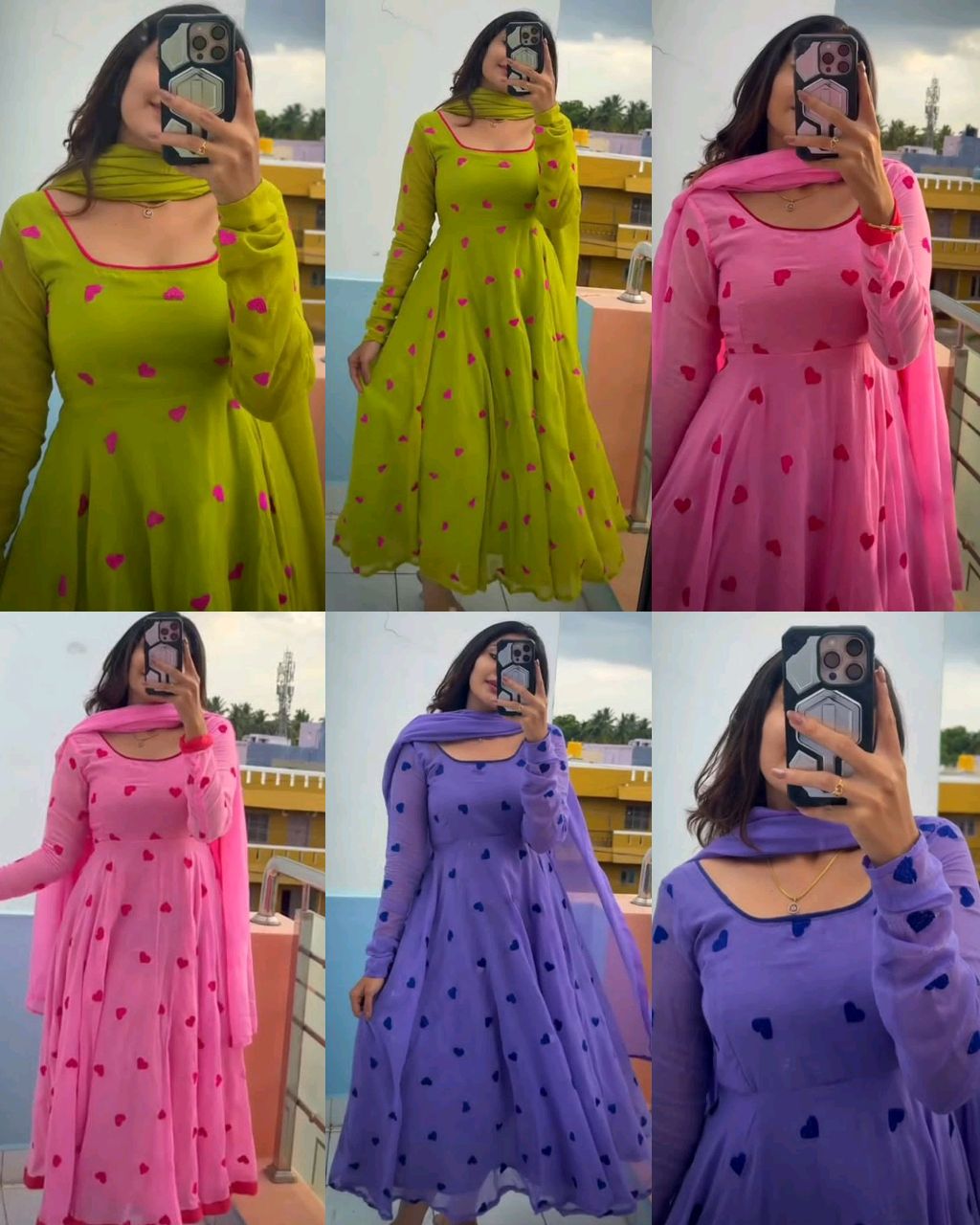 Designed to Make you feel Like a Queen.This perfect gift for your 💞.This heart Anarkali made with 😍😍 premium Georgette Fabric With beautiful heart embroidery work all over Gown 💃