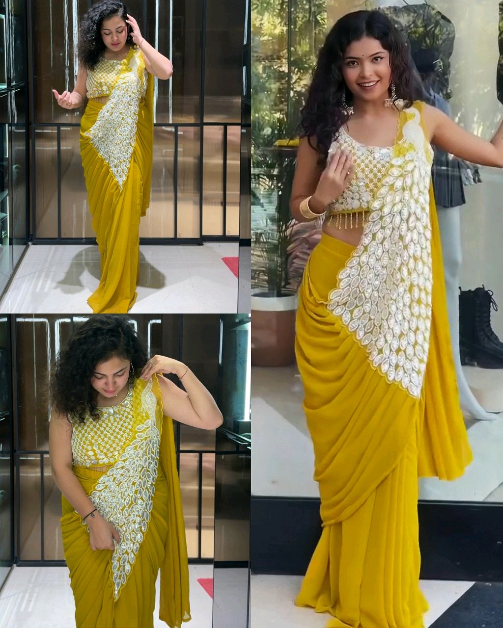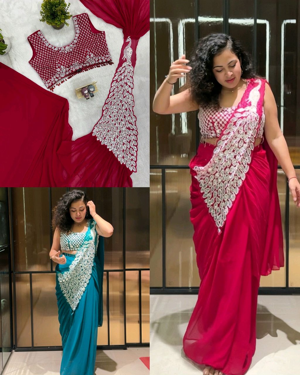 DRAPE SAREE Ready To Wear Saree 🔸Fabric: FAUX GEORGETTE* 🔸Work :- FULLY EMBROIDERY WORK / FULL STITCH UP TO 42 inch* 🔸_0.40 Meter Sleeve Fabric Available