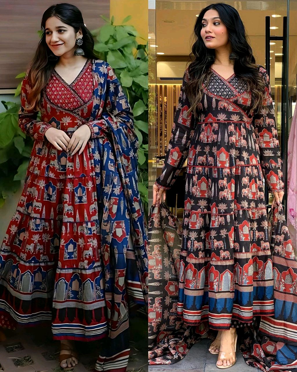 Elegance Traditional Women Anarkali Kurta and Pant Set with Dupatta 🔸 Fabric : Chanderi Silk 🔸Sleeve Length: Three-Quarter Sleeves 🔸Pattern: Printed 🔸Set Type: Kurta with Dupatta 🔸Stitch Type: Stitched 🔸Net Quantity (N): Single 🔸BUST SIZE : XS – 34, S – 36, M – 38 in, L – 40 in, XL – 42, XXL – […]