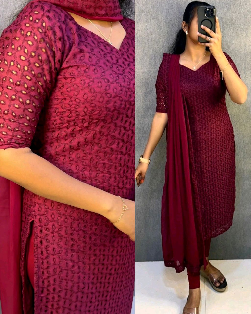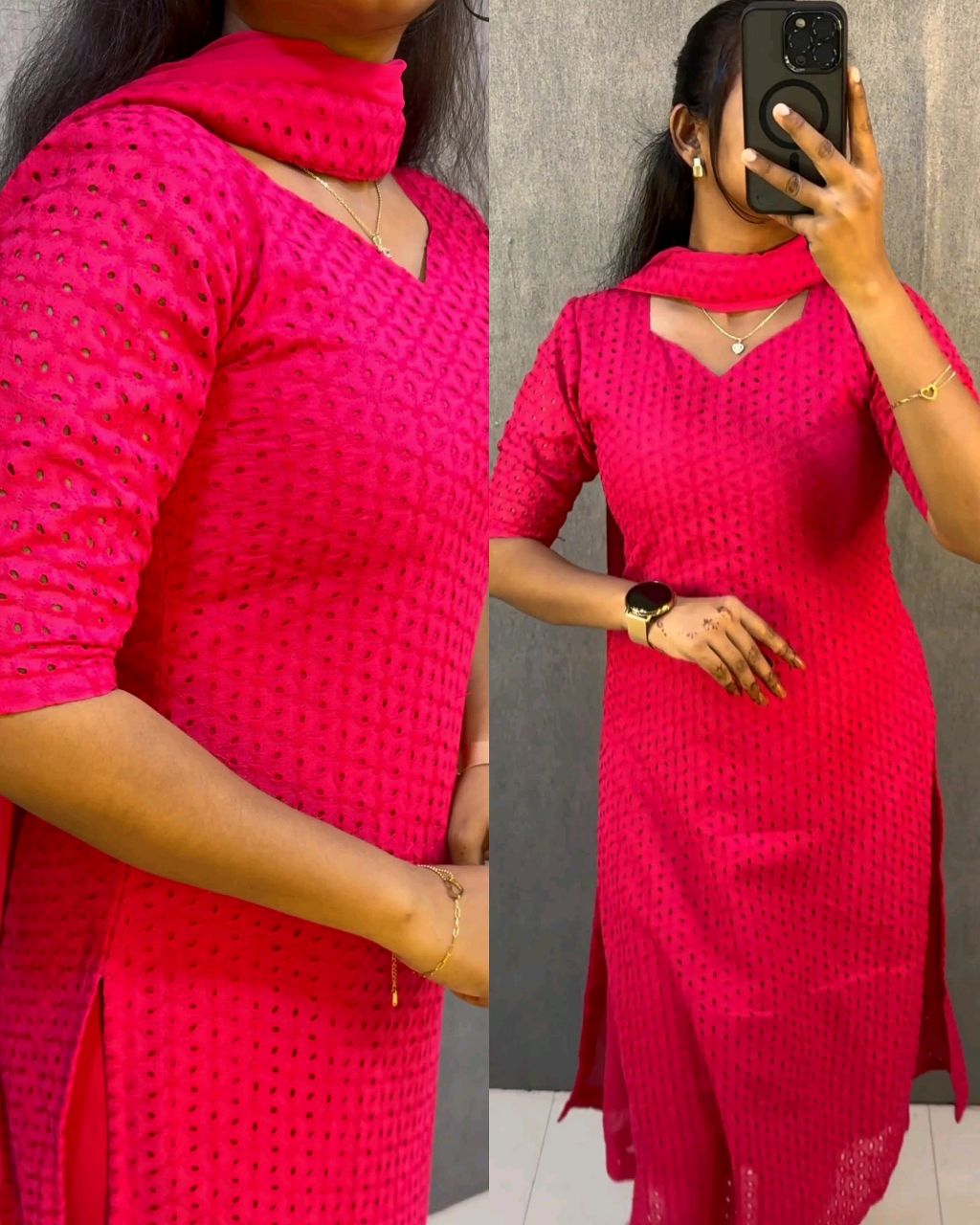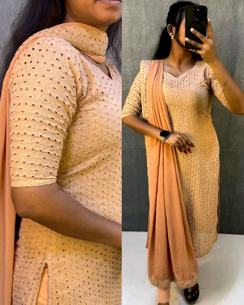 Elegant premium cotton hakoba kurti with six beautiful 🔸 Fabric : Premium cotton Hakoba 🔸Dupatta: faux Georgette with 4side hakoba lace border 🔸Kurti length: 43 inches 🔸Dupatta length: 2.25mtrs 🔸linning: complete creape Linning 🔸BUST SIZE : XS – 34, S – 36, M – 38 in, L – 40 in, XL – 42, XXL – […]