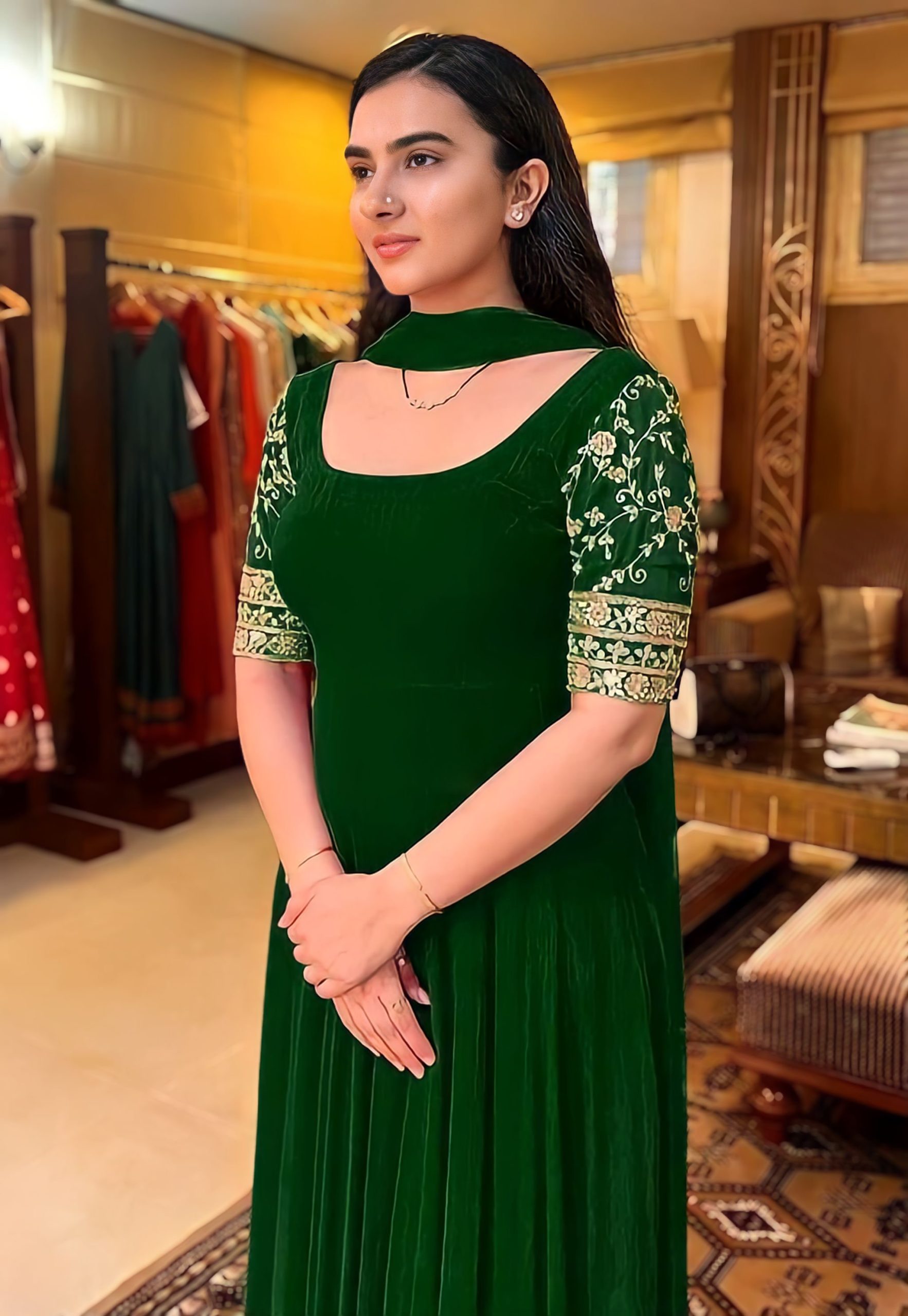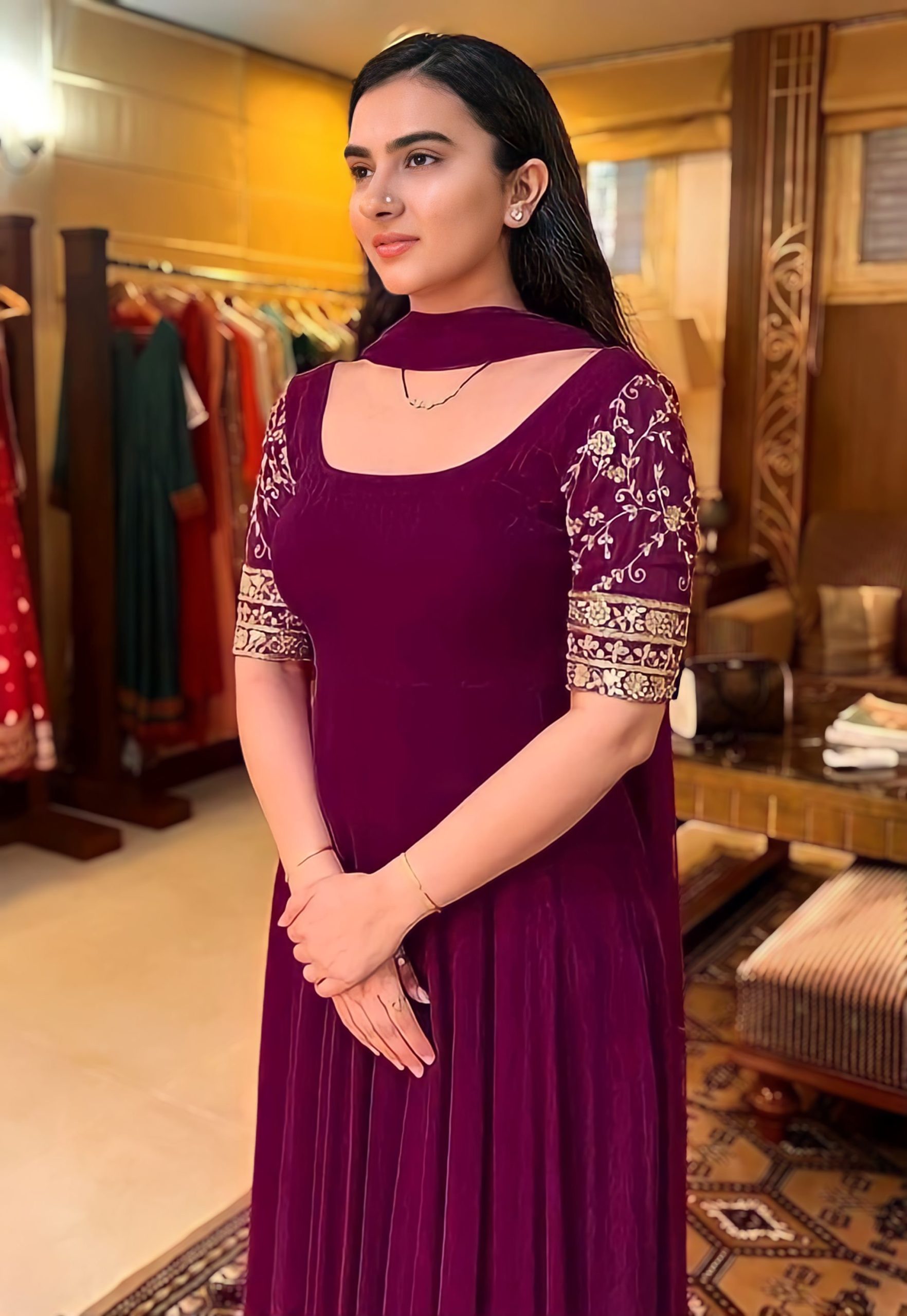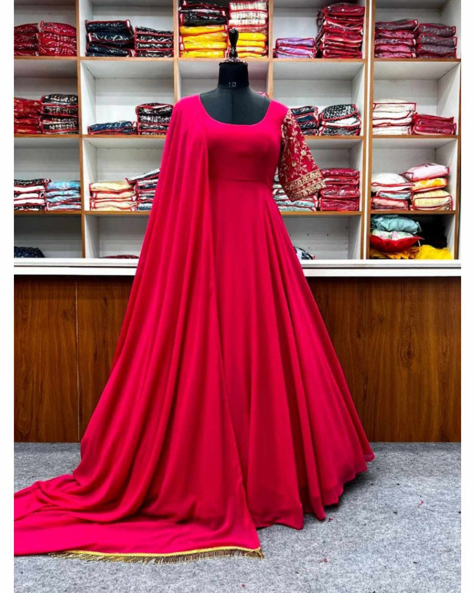 Fancy Georgette Gown With Embroidery Zari Work With Dupatta 🔸Fabric : Georgette 🔸Type: Stitched 🔸 Design Type: Indo-western 🔸Occasion: Festive & Party 🔸SIZE : S(36) M(38) L(40) XL(42) XXL (44) 3XL (46)