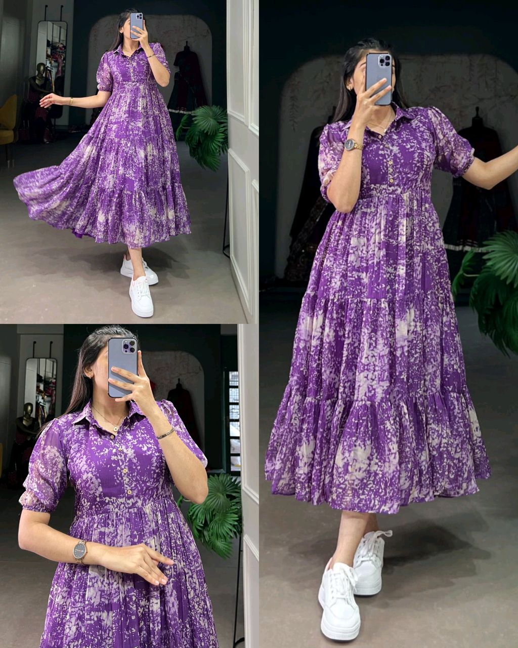 Fabulous Digitally Printed Shirt Collor Western Dress 🔸Fabric : Georgette 🔸Sleeve Length: Long Sleeves 🔸Pattern: Printed 🔸Net Quantity (N): 1 🔸BUST SIZE : S – 36, M – 38 in, L – 40 in, XL – 42, XXL – 44, XXXL – 46