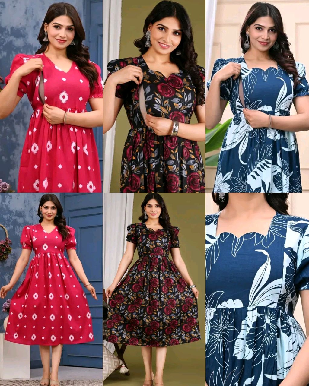 Feeding / Maternity Wear Gown 🔸Fabric : Cotton Cambric 🔸Sleeve Length: Three-Quarter Sleeves 🔸Stitch Type: Stitched 🔸Fit/ Shape: Maternity 🔸Pattern: Printed 🔸Combo of: Single 🔸SIZE : M(38) L(40) XL(42) XXL (44)