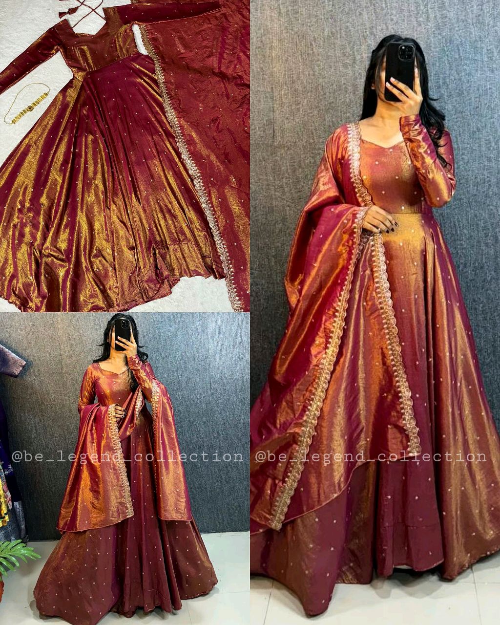 🔸Fabric : ORIGINAL BANARASI TISSU TWO TONE WITH EMBROIDERY WITH 3mm SEQUENCE THREAD WORK 💎
