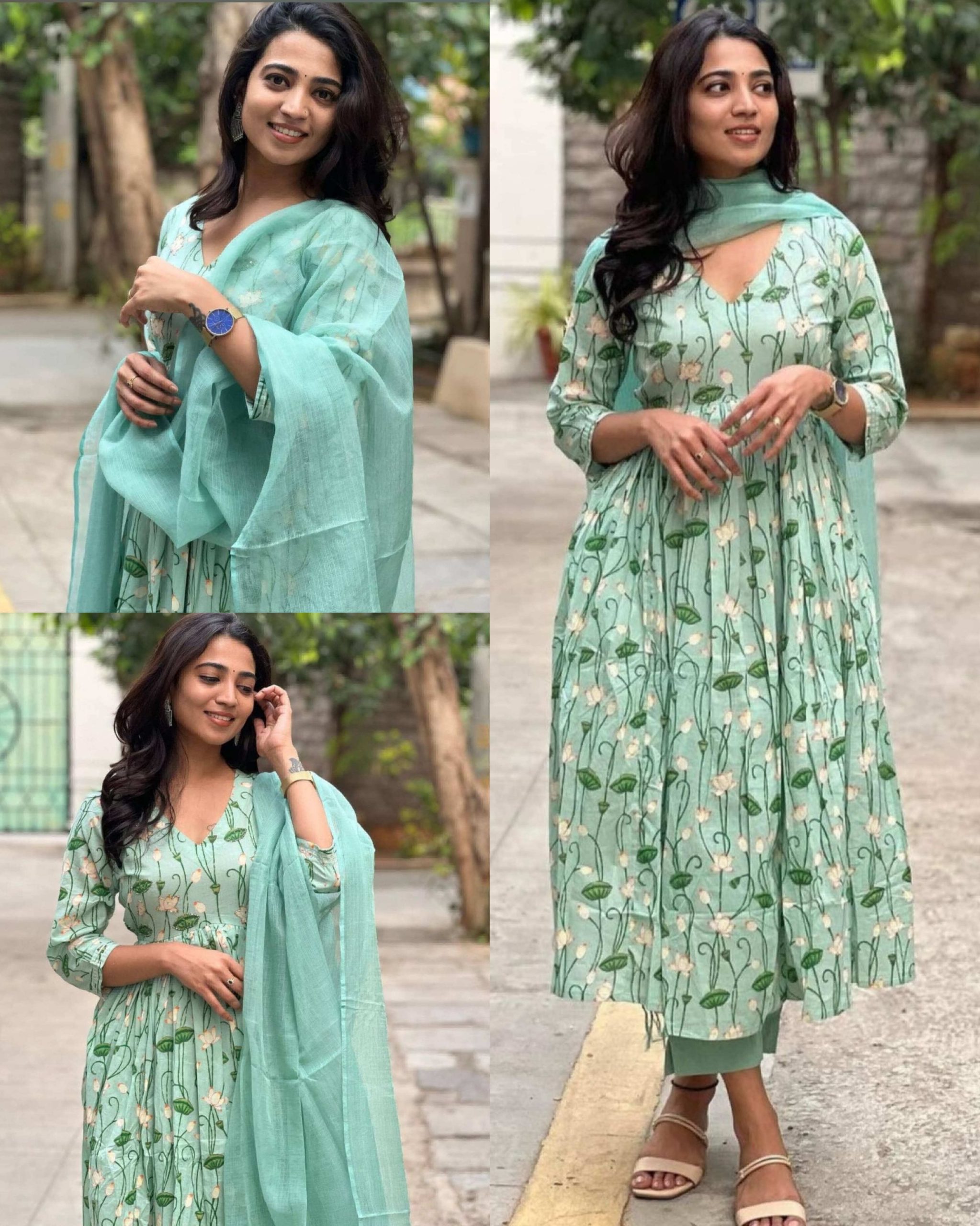 Green Designer New Launching 🔸Fabric: REYON PRINT 🔸BOTTOM :- AMERICN CREAP LENGTH 39″ 🔸DUPATTA :- COTTA CHECK 🔸SIZE : M(38) L(40) XL(42) XXL (44) 3XL (46) 5XL (50)