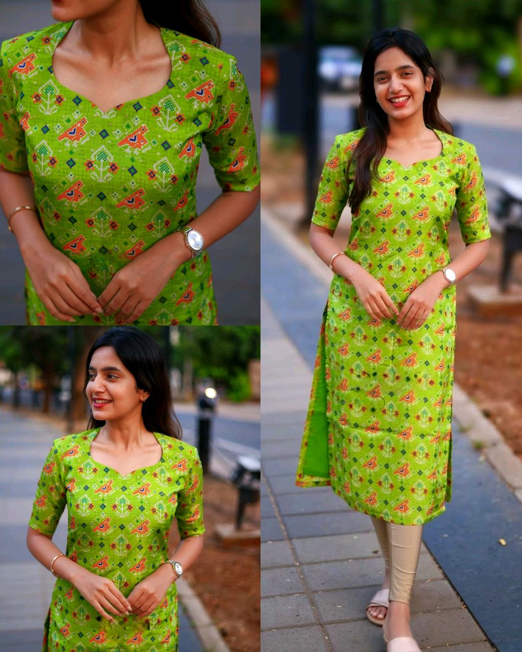 GREEN FLOWER 🔸Fabric : Cotton 🔸Sleeve Length: Short Sleeves 🔸Pattern: Printed 🔸Combo of: Single 🔸BUST SIZE : XS – 34, S – 36, M – 38 in, L – 40 in, XL – 42, XXL – 44, XXXL – 46