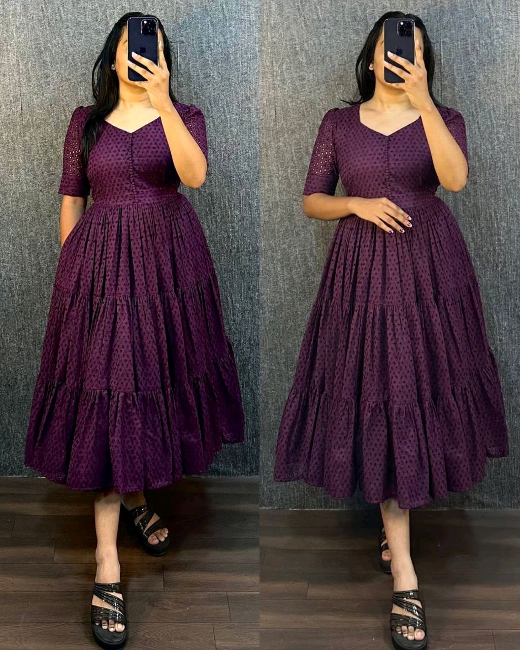 Hakoba 3 layer Gown With One Side Pocket 🔸 Fabric : Hakoba 🔸MIDI LENGTH- 45+ 🔸SLEEV LENGTH – 12 inch+ 🔸LINING : Micro* 🔸BUST SIZE : XS – 34, S – 36, M – 38 in, L – 40 in, XL – 42, XXL – 44, XXXL – 46