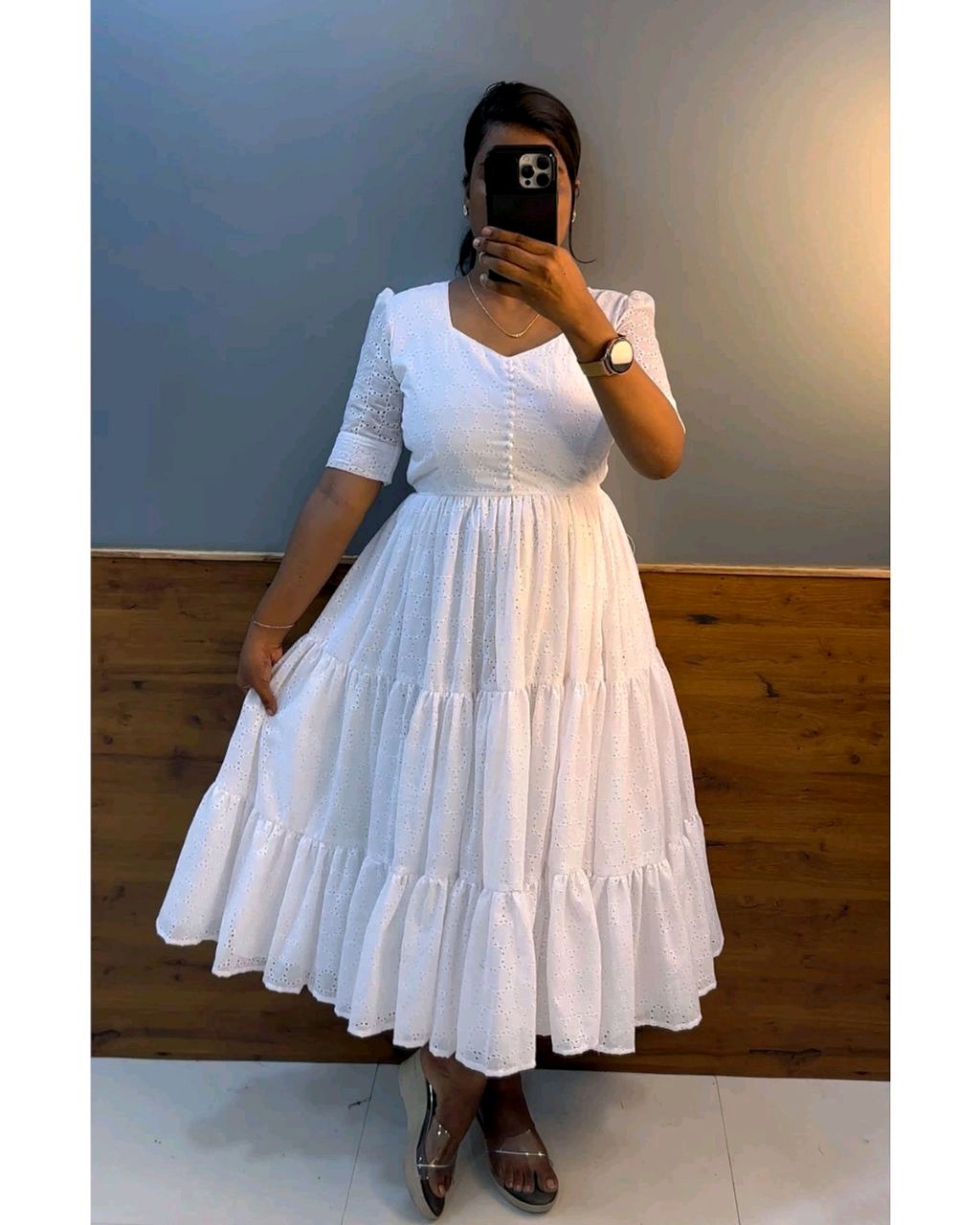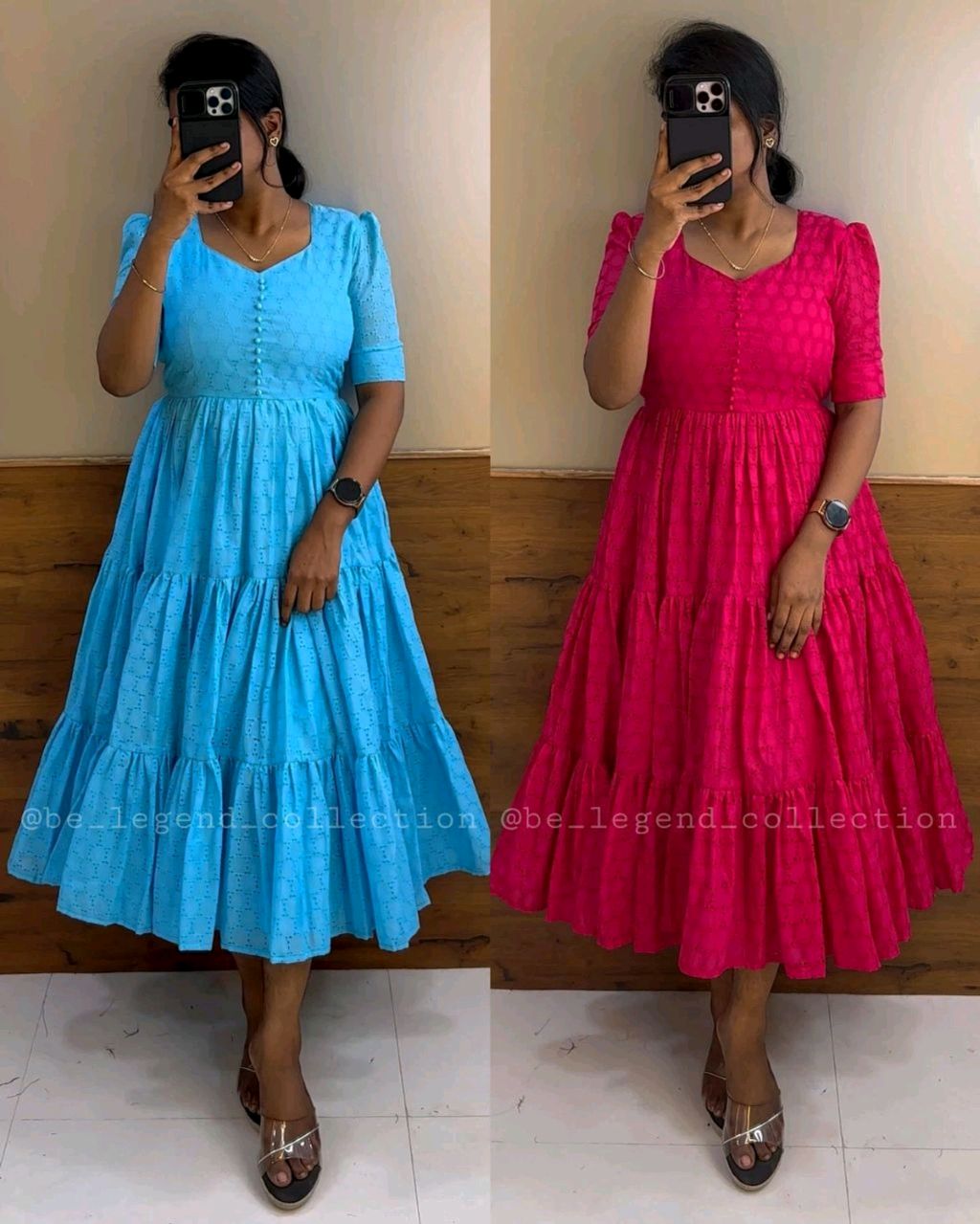 Hakoba 3 layer Midi Gown 🔸Fabric : Hakoba cotton 🔸Length : 44-45 inches 🔸Puff sleeve 🔸Back side rope attached for fitting 🔸Full lining available inside 🔸SIZE : S(36) M(38) L(40) XL(42) XXL (44) 3XL (46)