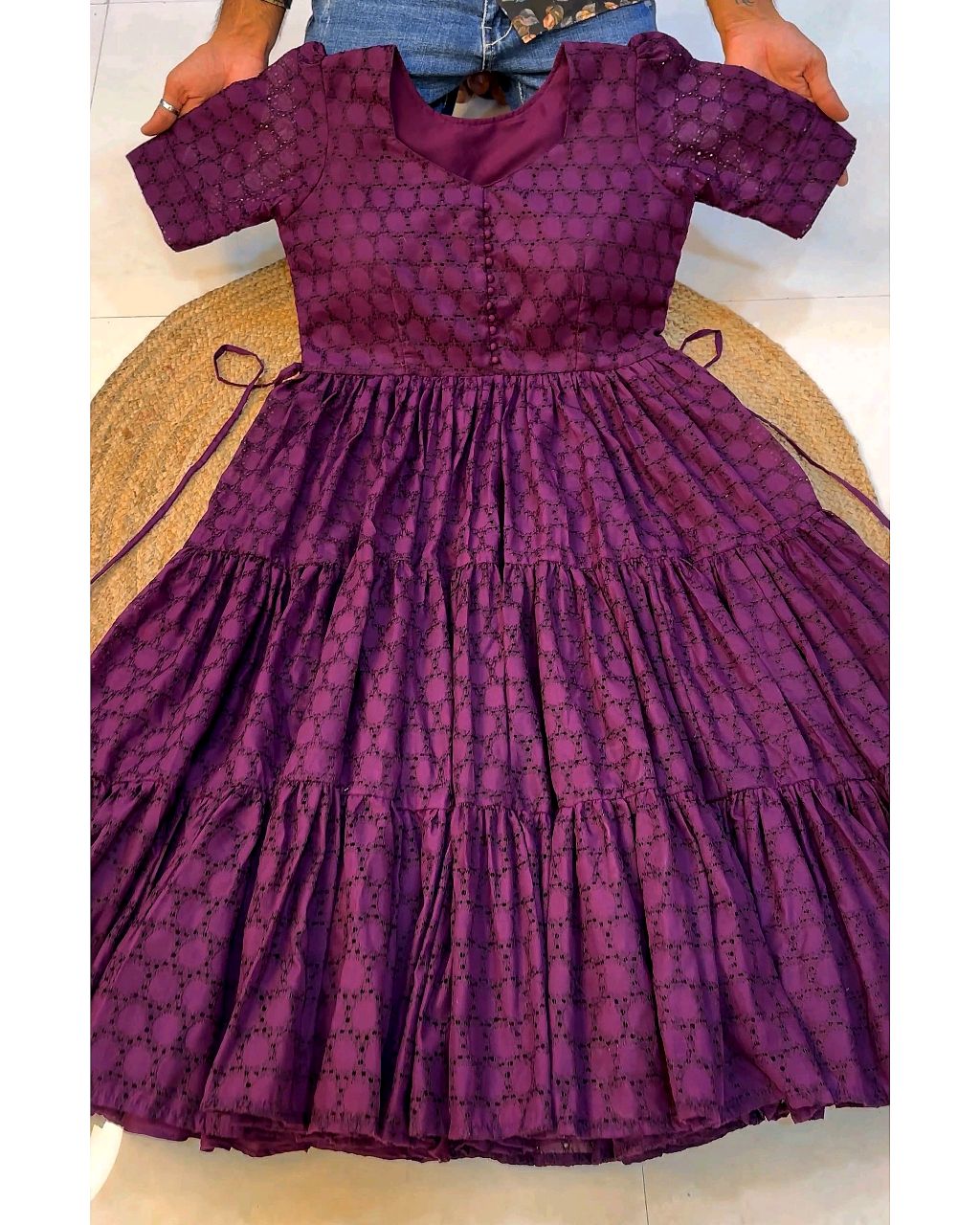 Hakoba 3 layer Midi Gown 🔸Fabric : Hakoba cotton 🔸Length : 44-45 inches 🔸Puff sleeve 🔸Back side rope attached for fitting 🔸Full lining available inside 🔸SIZE : S(36) M(38) L(40) XL(42) XXL (44) 3XL (46)