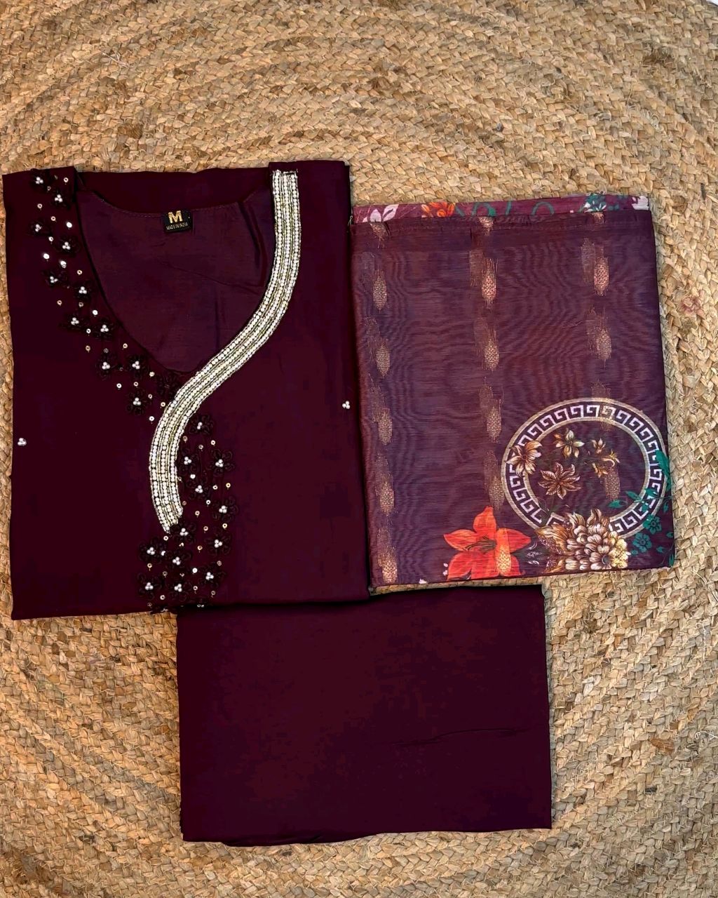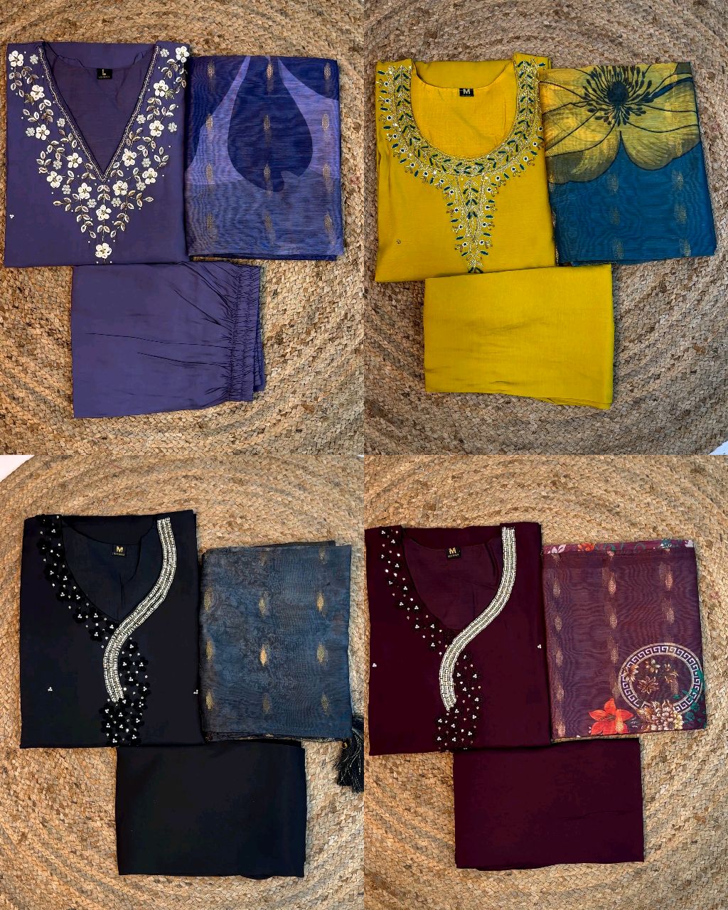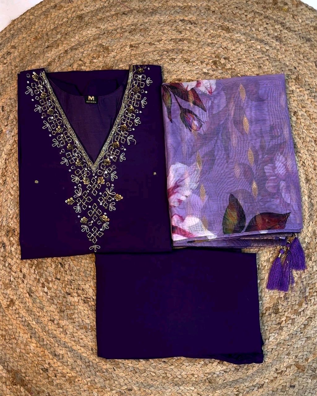 🔸Fabric: Premium Roman Silk 🔸DUPATTA : Heavy Jequard With beautiful Print With Latkan (2.30 Mtr) 🔸WORK* : premium heavy Hand Work 🔸INNER*: Cotton Inner