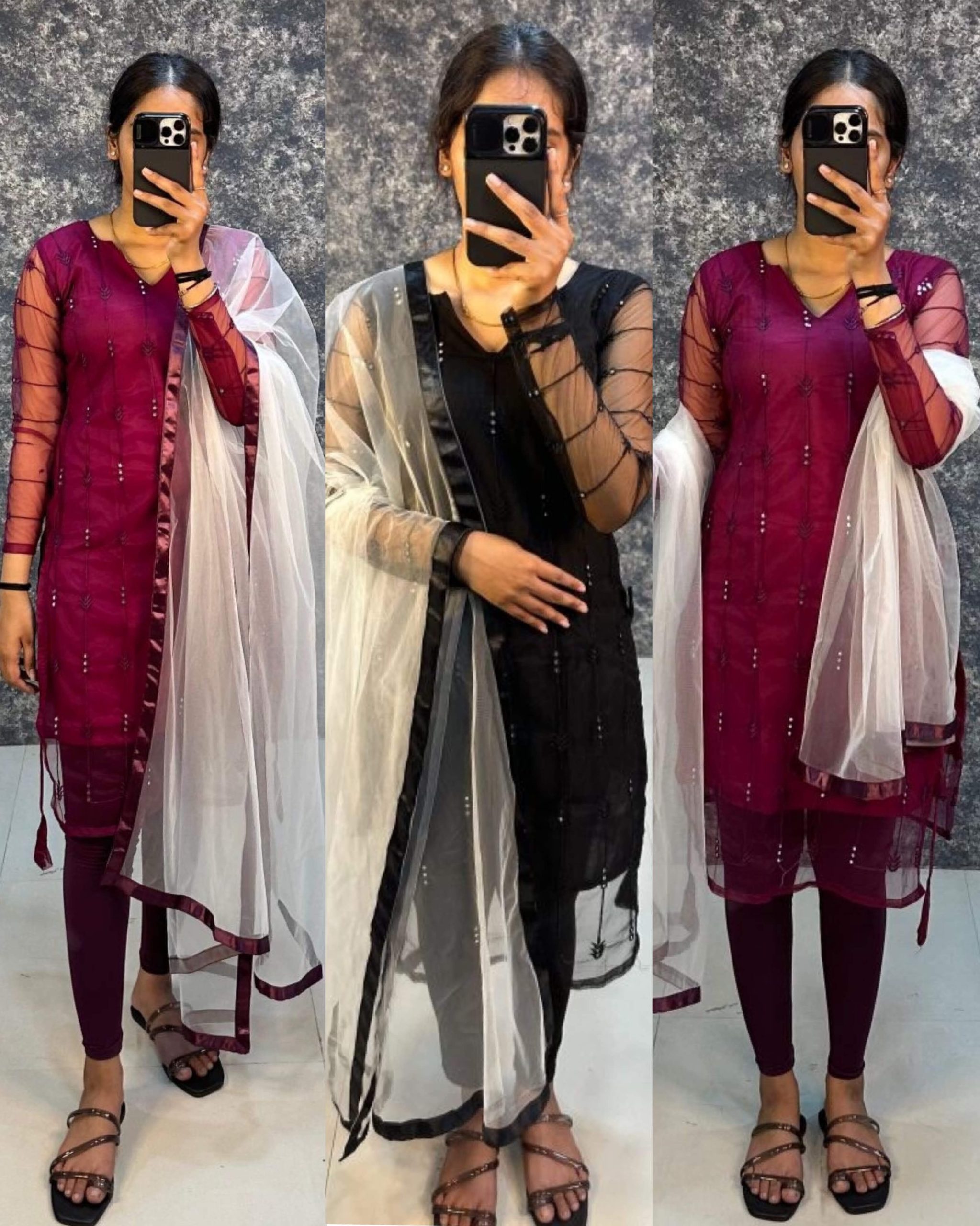 ๐ธFabric: GOWN FABRICS : HEAVY BUTTERFLY NET WiTH 9 mm Sequence Work๐*