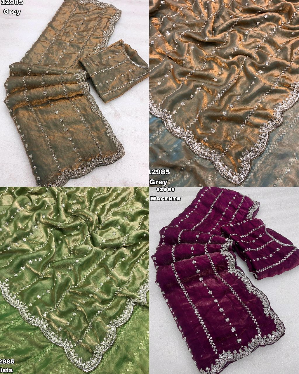 High Trending Presenting you the luxurious and glamorous hand work saree 🔸Fabric: Space silk 🔸SAREE LENGTH-* 5.50 Mtr 🔸SAREE WORK-* Original beeds work 🔸BLOUSE FABRIC-* Space silk with beeds work