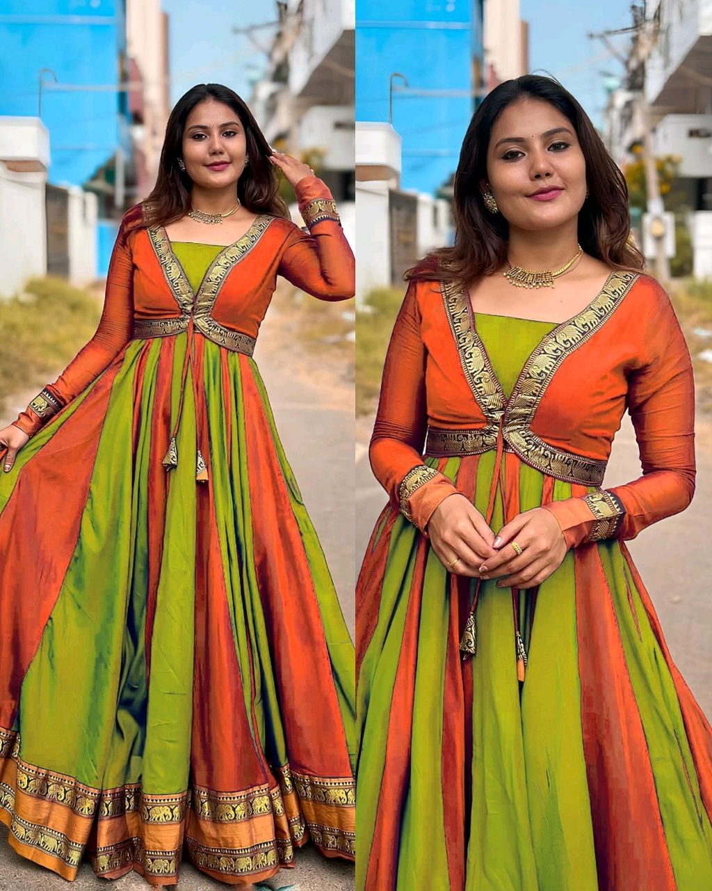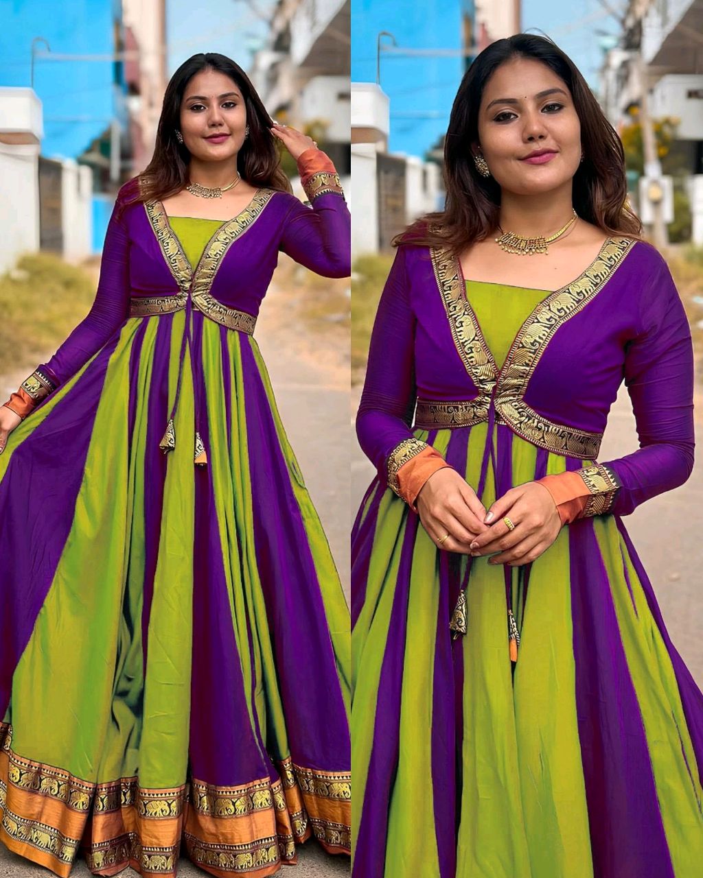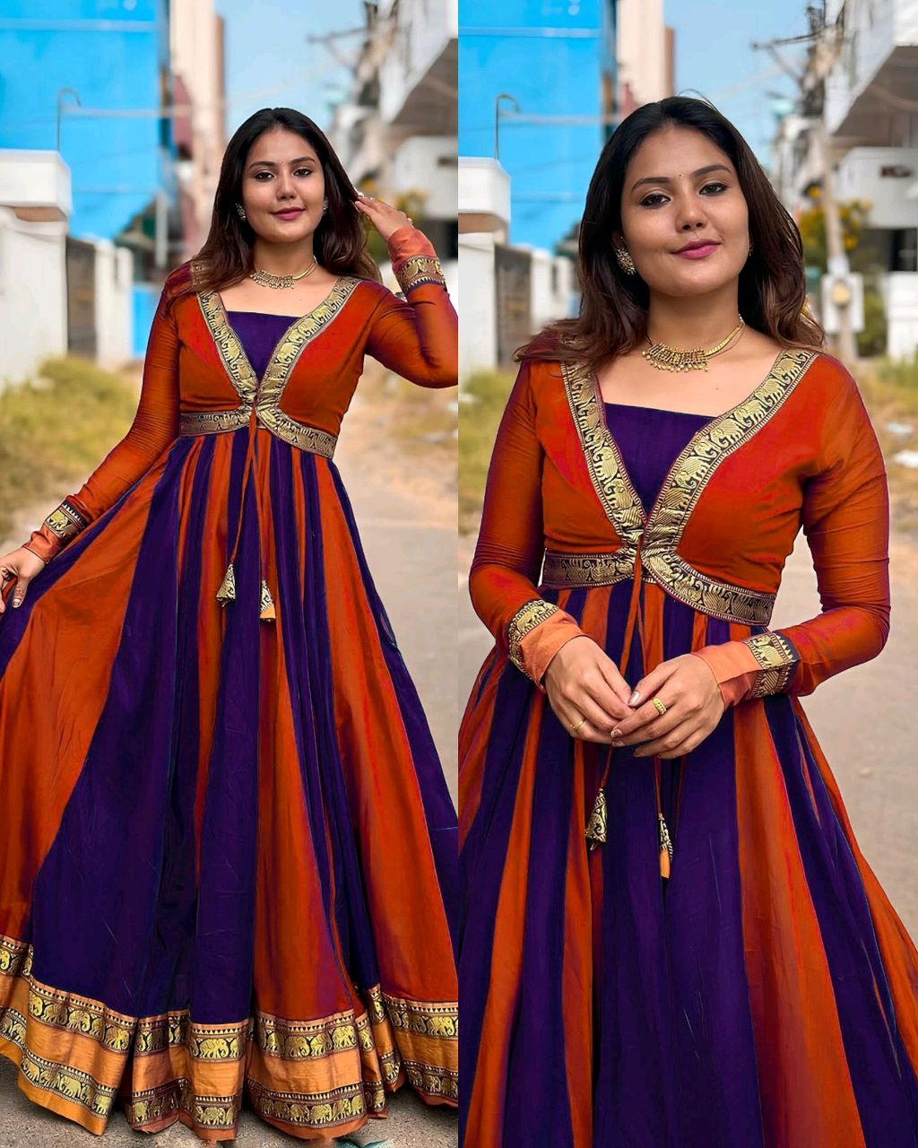 🔸Fabric : Vichitra Silk And Bottam Side Elephant Less*