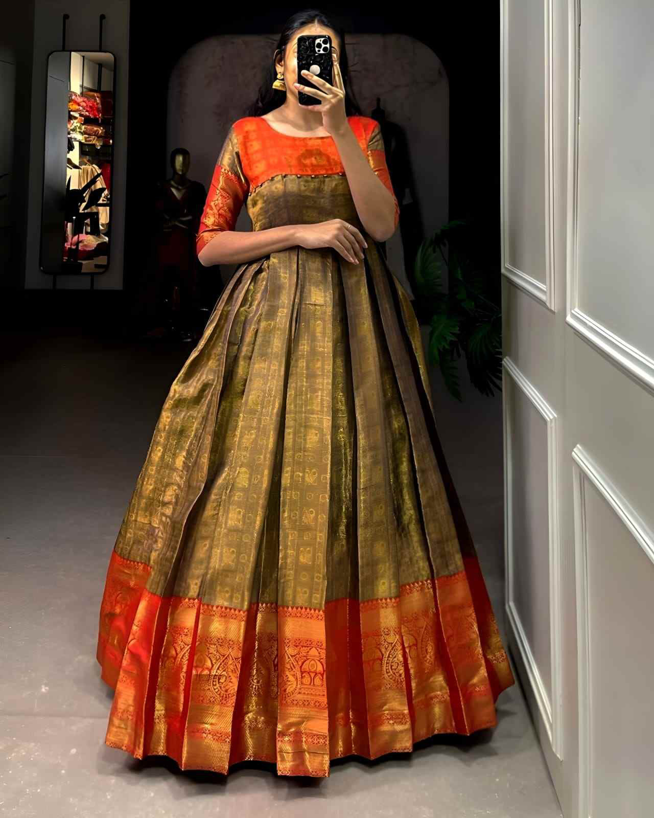 Kanjivaram pure silk Gown for diwali festival