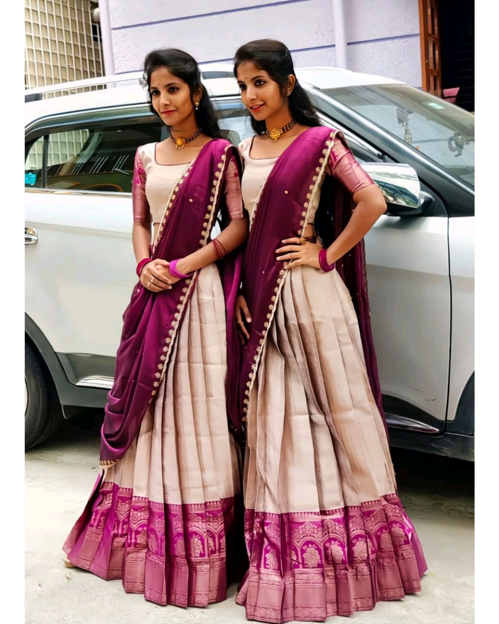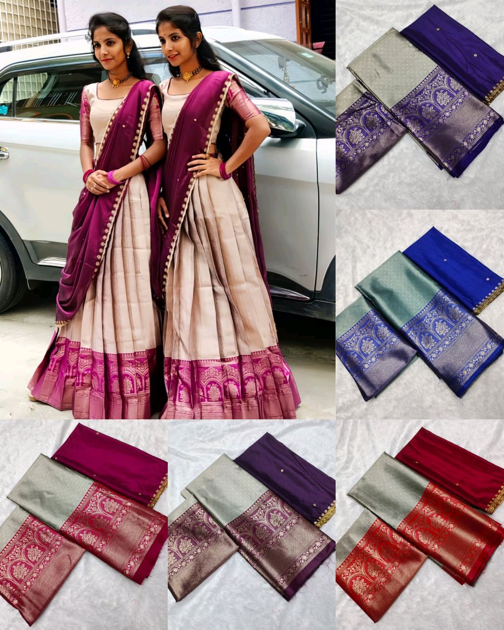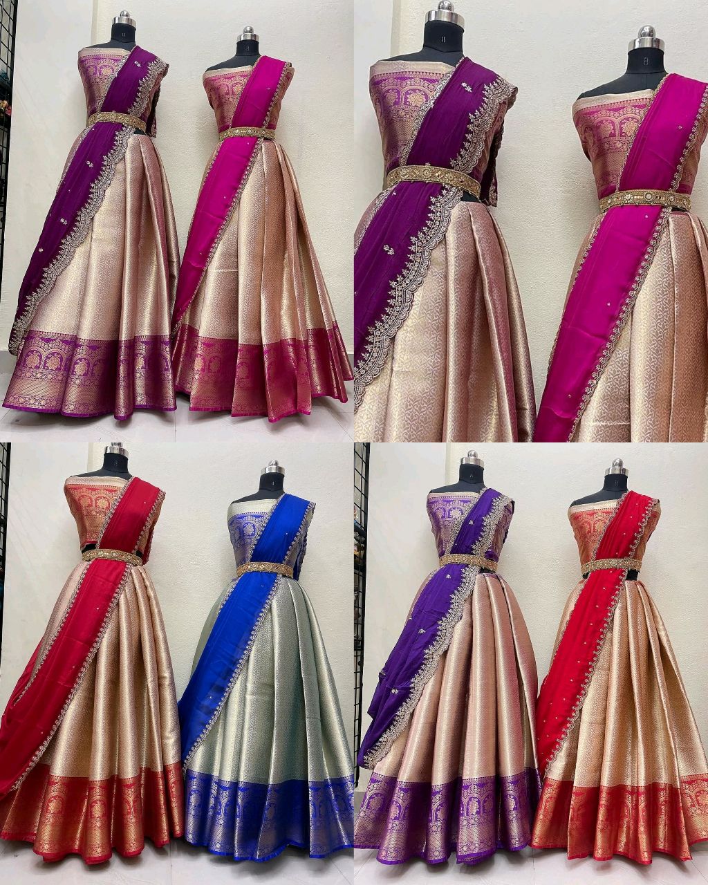 Kanjiveram Silk Zari lehanga with blouse along with cutwork Duppta 🔸Lehanga : 3 meters* 🔸Blouse : 1 meter approx* 🔸Voni : 2.20 meters silk Fabric with 2side piping