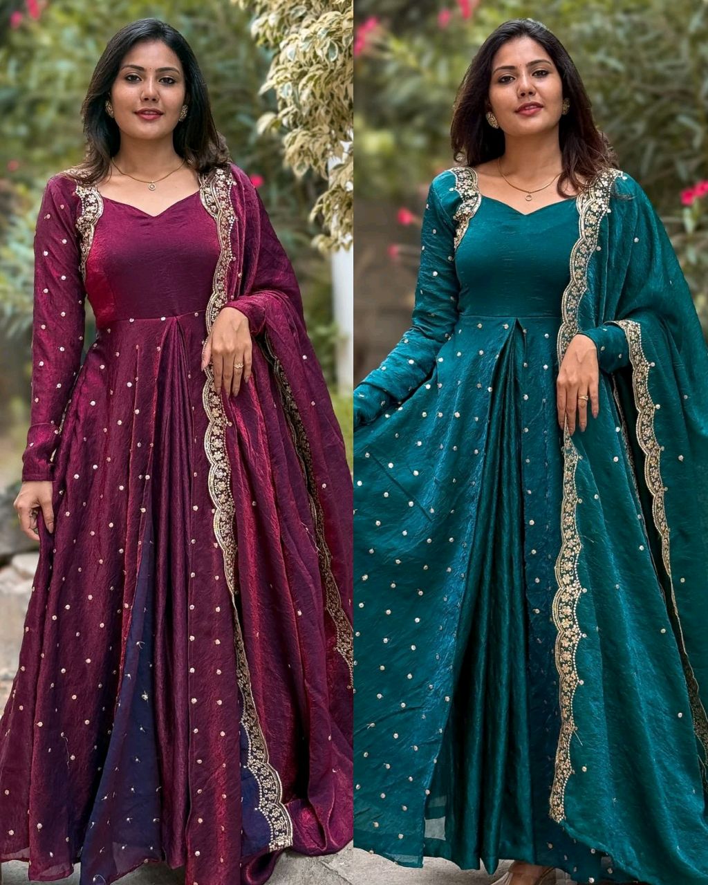 🔸 Fabric : Heavy Fandy Silk With 🔸Embroidery sequence Work*
