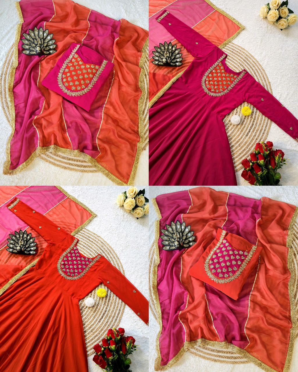 Launching Most Trending our Fux Georgette Silk. Eye-catching Hand Work Gown, a perfect blend of luxury and tradition for any Occasion & Festival 🔸FABRIC : Premium Fux Georgette Silk* 🔸Work* :- Fancy HandWork & Mirror Lace Border in Flair 🔸Colour* :- 2 Colours 🔸Inner: Micro Cotton 🔸Flair:4 Mtr flair 🔸 Length: 52+ 🔸Package Contain: Gown […]