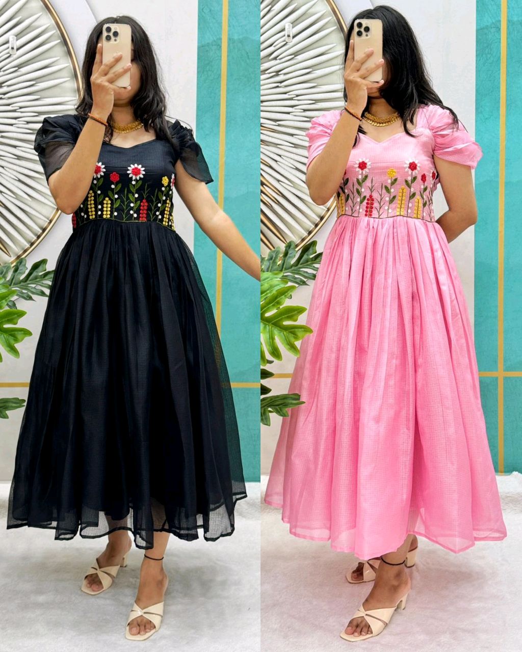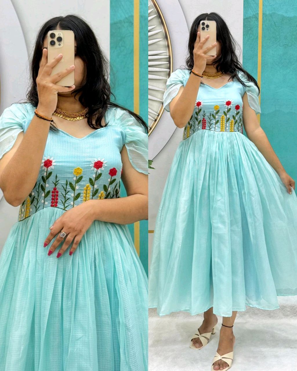 Launching Our Latest Beautiful Stylist Gown with Handowk – Where Elegance Meets Comfort 🔸Fabric: Soft Kota checks 🔸Work : Thread Work 🔸Length : 48 inch 🔸Lining : Micro Cotton 🔸Flair : 3.2 Mtr 🔸BUST SIZE : XS – 34, S – 36, M – 38 in, L – 40 in, XL – 42, XXL – […]