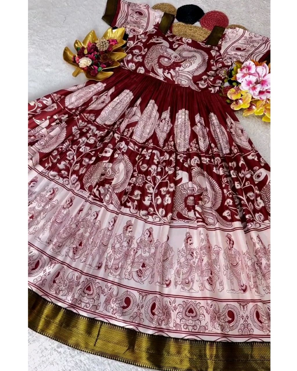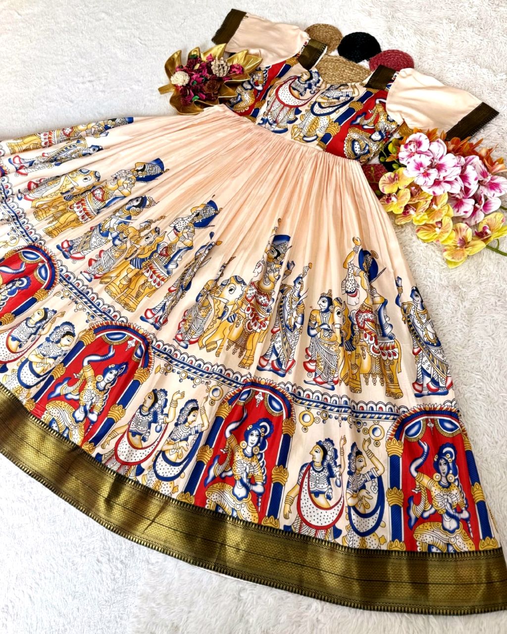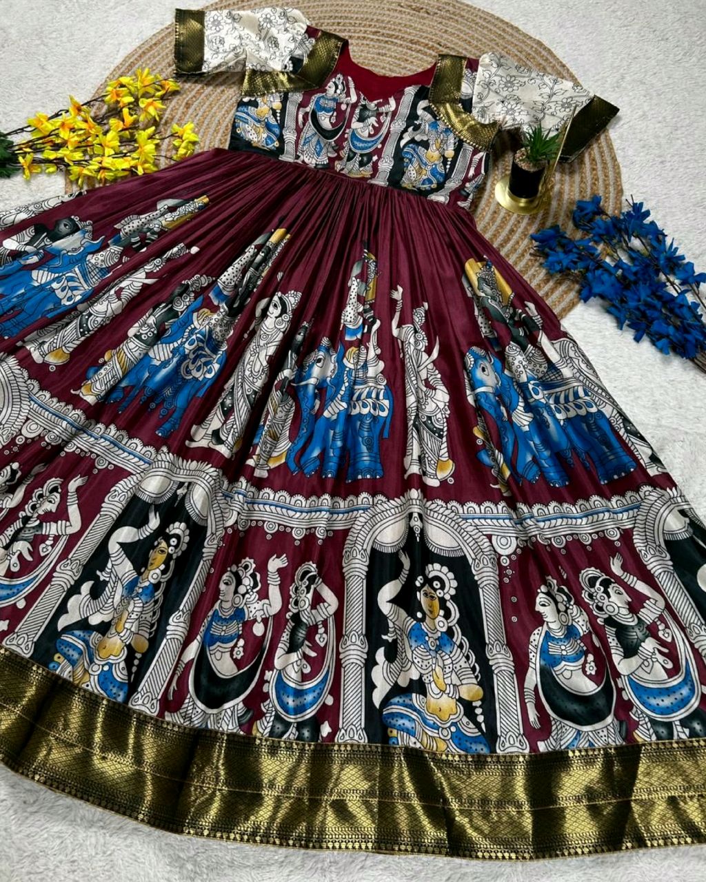 Launching Top Trending Beautiful Soft Dola Silk Kalamkari Gown A touch of glamour and elegance to your look For Festive Season