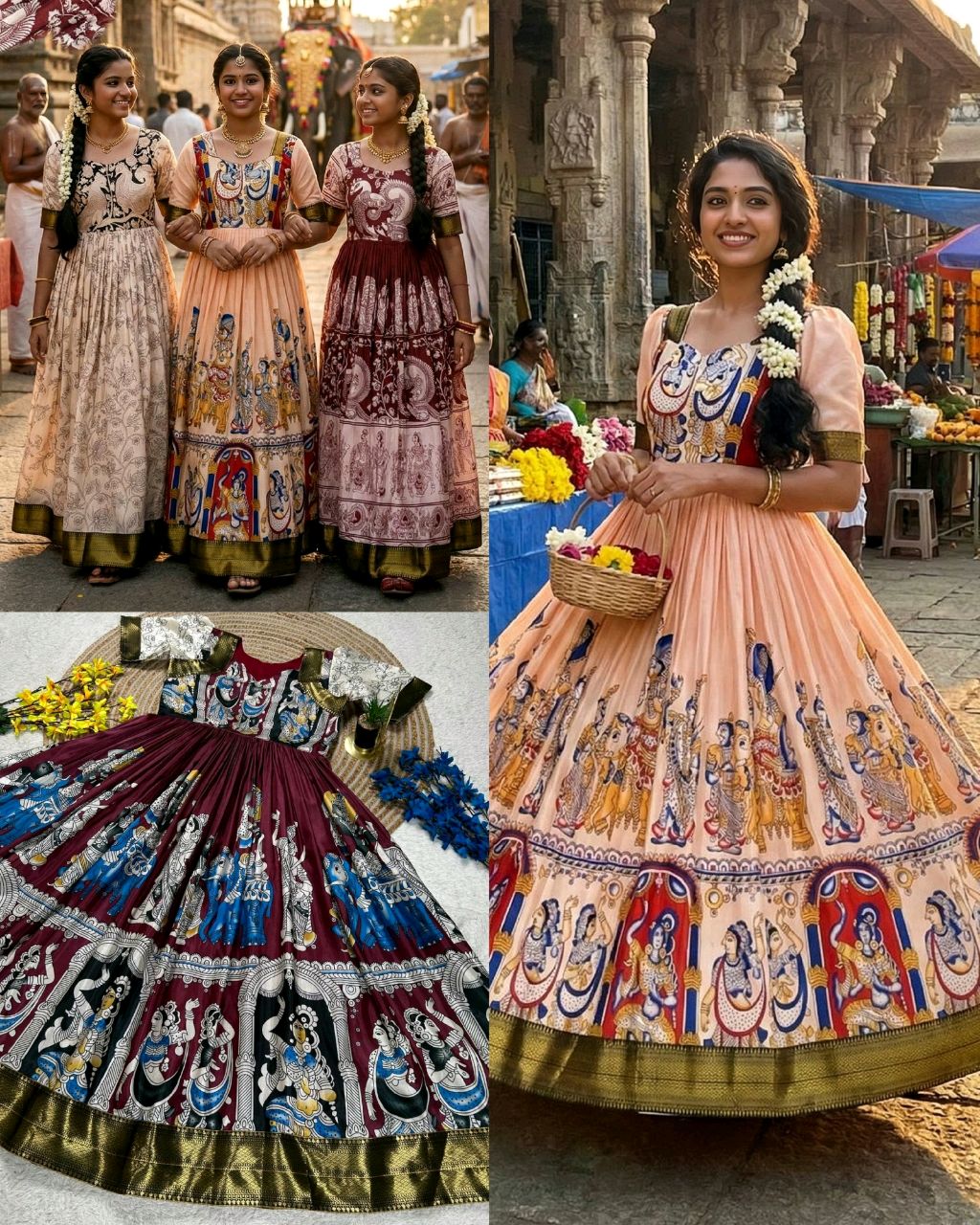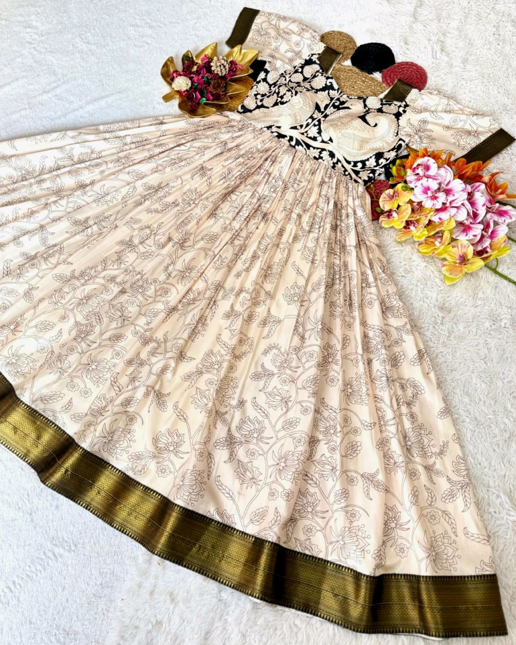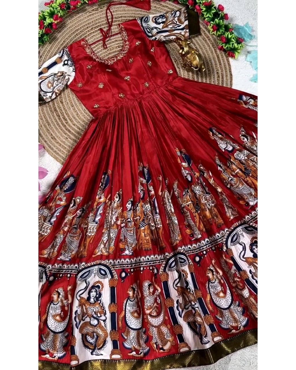 Launching Top Trending Beautiful Soft Dola Silk Kalamkari Gown A touch of glamour and elegance to your look For Festive Season