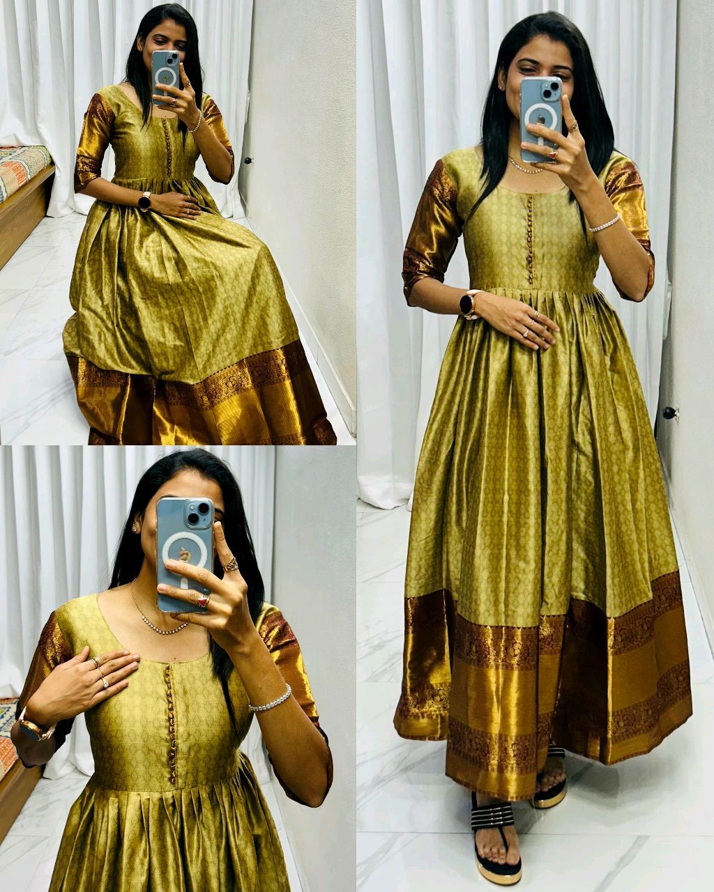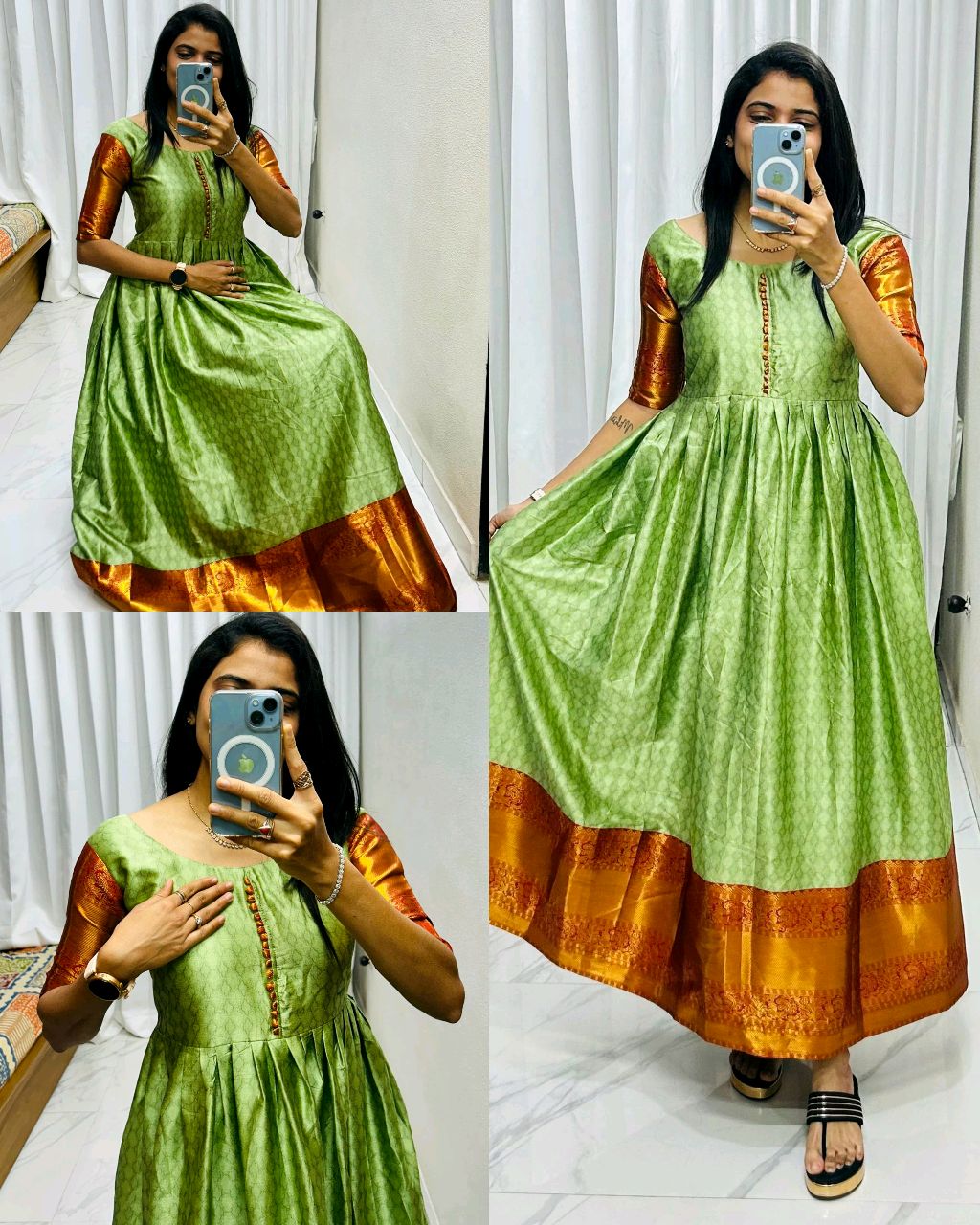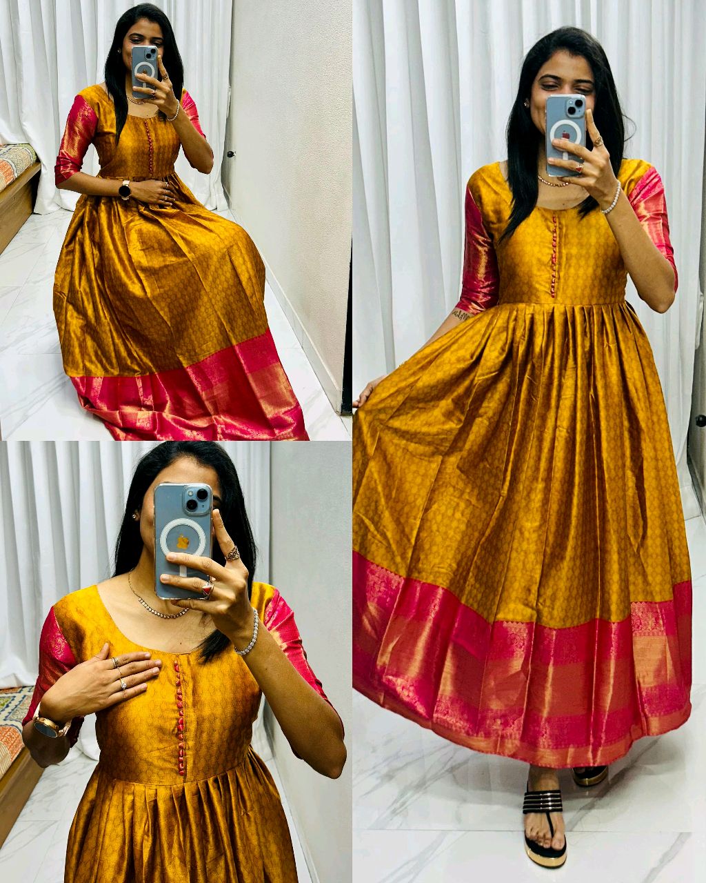 Launching Traditional gown for Festival Season 🔸Fabric: soft silk with heavy jeqcard border with half sleeves 🔸3 meters fair 🔸51 near full length 🔸BASIC BUST SIZE : XS – 34, S – 36, M – 38 in, L – 40 in, XL – 42, XXL – 44, XXXL – 46