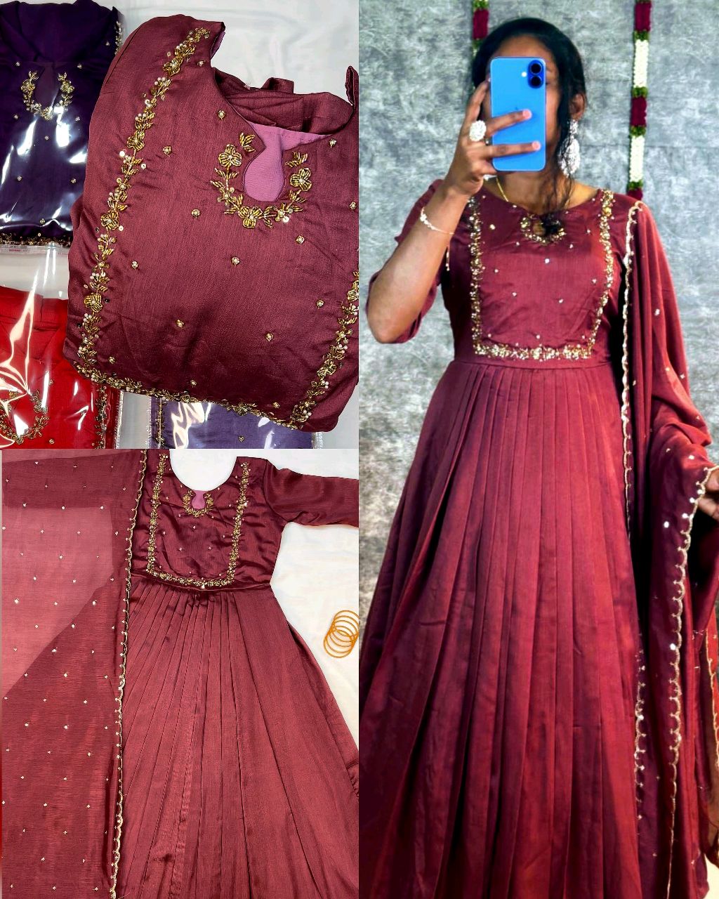 Launching Trendy Handwork Beautiful Neck Pattern Gown With Dupatta
