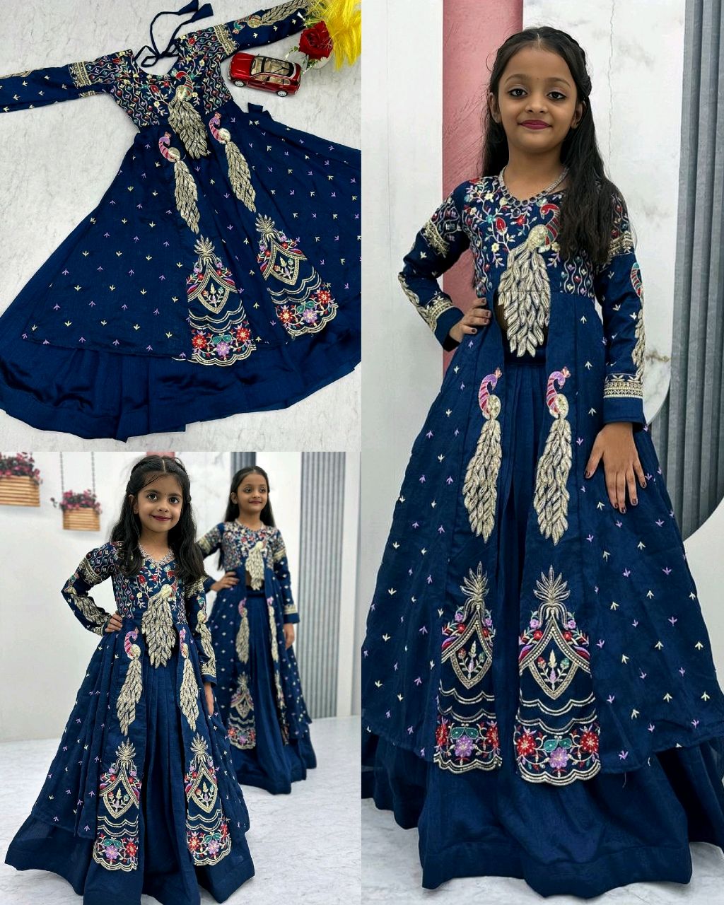 Launching Trendy Peacock Design Festival Special Crop Top with Shrug 🔸Fabric: Pure Vichitra 🔸Work:-* Heavy Thread Annd Sequence Work 🔸Inner:-* Micro Cotton 🔸Size:-* 8 Number 26 Upto 28Margin 10 number 30Upto 32Margin *(Fully Stitched)* 🔸Flair:-* 2.5 Meter 🔸Size:-* 8 nom 26 height&10 Nombar 34 height 🔸Attached Canvas Patta