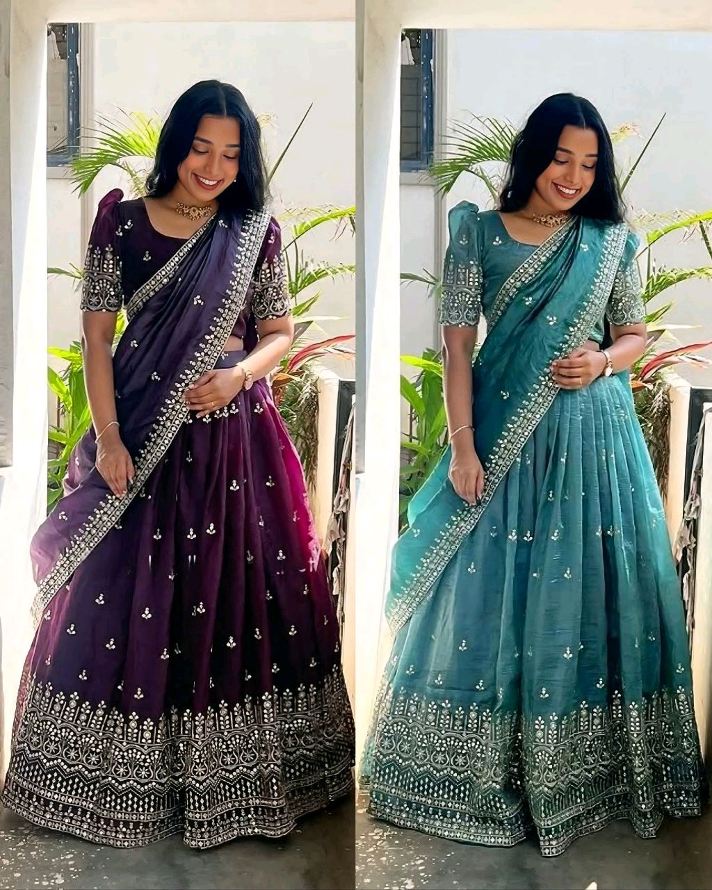 Luxury Fully Stitched Festivel Launch ◾Fabric: Soft Chinnon Silk With Rich Sequins Embroidery Work ▪ Inner/ Lining : Cotton ▪ Size:- L – XL (Free Size) *◾ Lehenga (Full-Stitched)* ▪ Fabric & Work:- Soft Chinnon Silk With Rich Sequins Embroidery Work ▪ Length : 42” ▪ Flare : 3.3 Mtr ▪ Waist : Free Size […]
