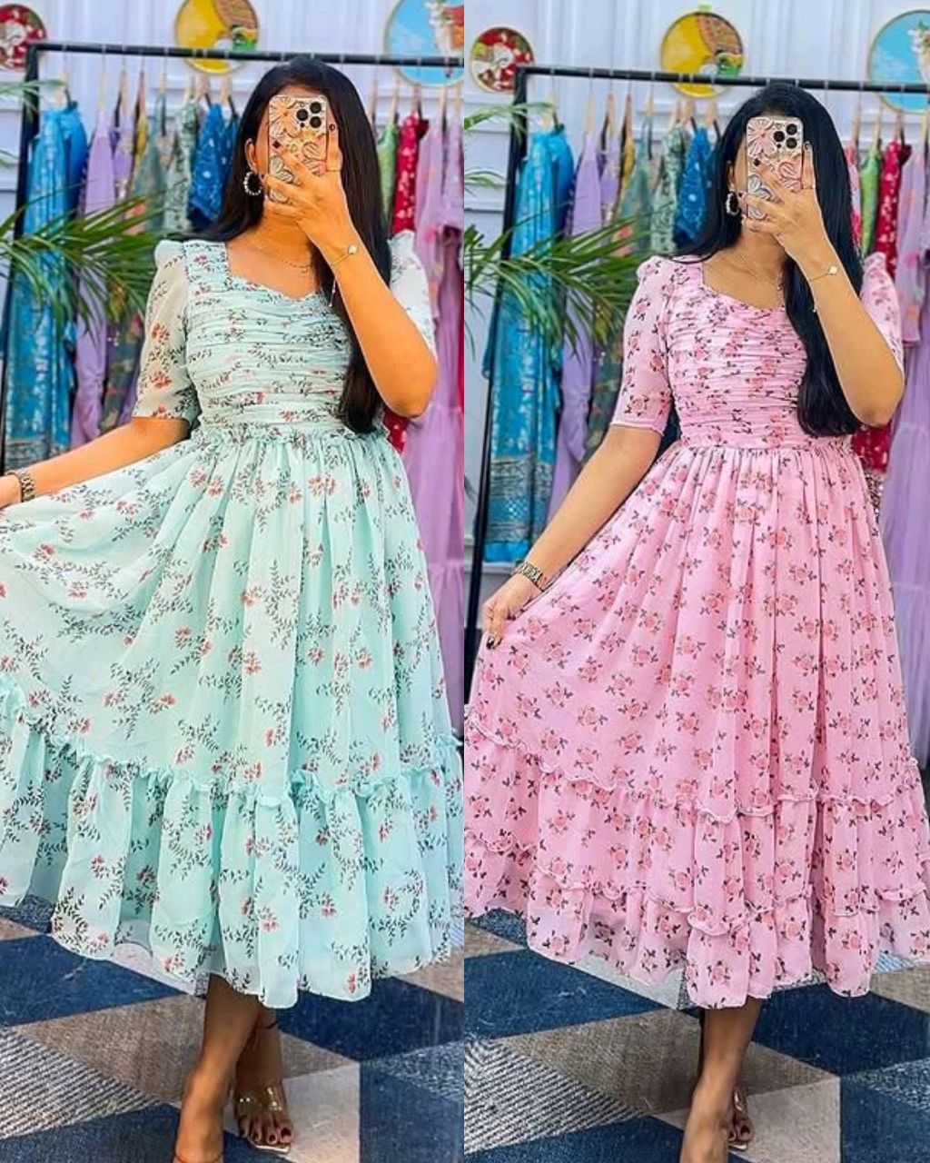 Maxi on summer in style with our latest addition 🔸Fabric : Fox Georgette 🔸Complete Linning 🔸Length:- 48″ 🔸Sleeves length short 🔸BUST SIZE : S – 36, M – 38 in, L – 40 in, XL – 42, XXL – 44