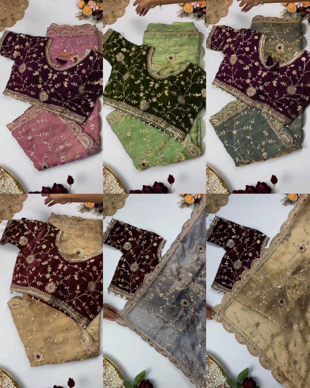 Most Grand Festival Wear Saree 🔸Fabric: Very Soft nd Elegant rich look sartin silk 🔸Saree Work : beautiful embroidery 3 mm sequence work 🔸Saree Inner : 5.5 🔸Blouse Fabric : running 🔸Blouse Work : mirror lace nd moti latkan Work