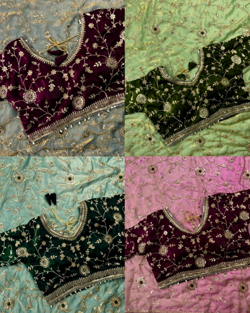 🔸Blouse Work : mirror lace nd moti latkan Work
